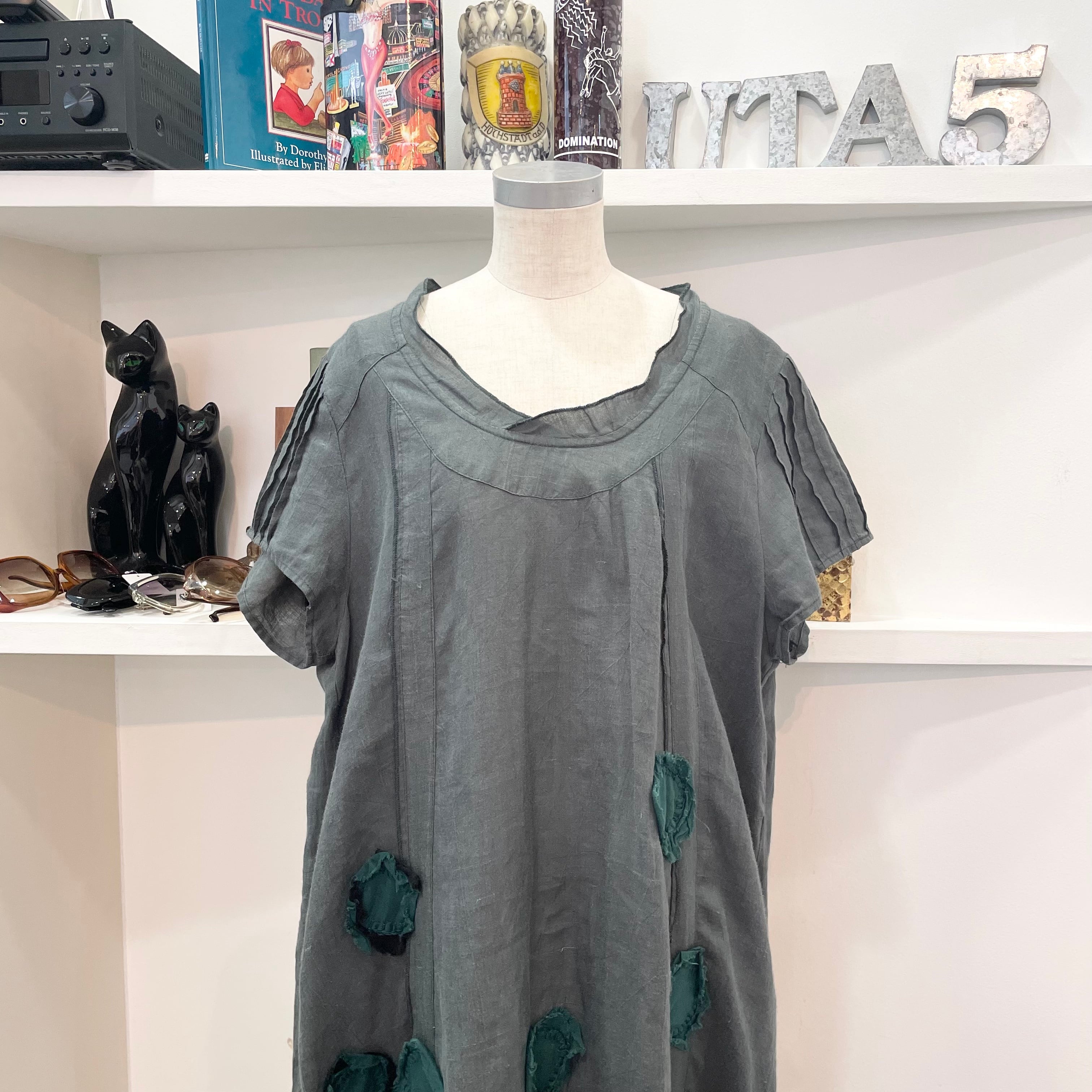 vintage/linen/サイズL/リネン/ワンピース/グリーン
