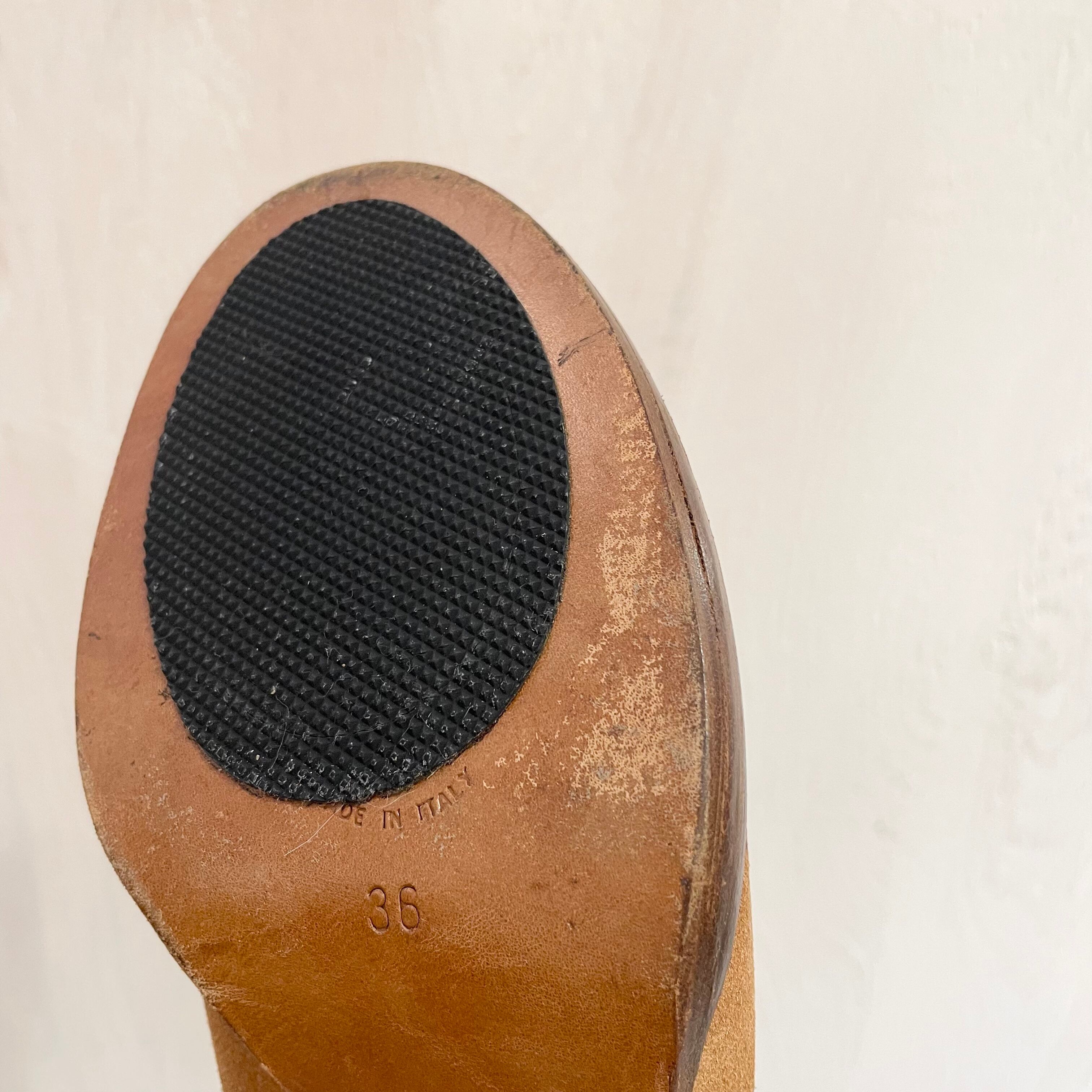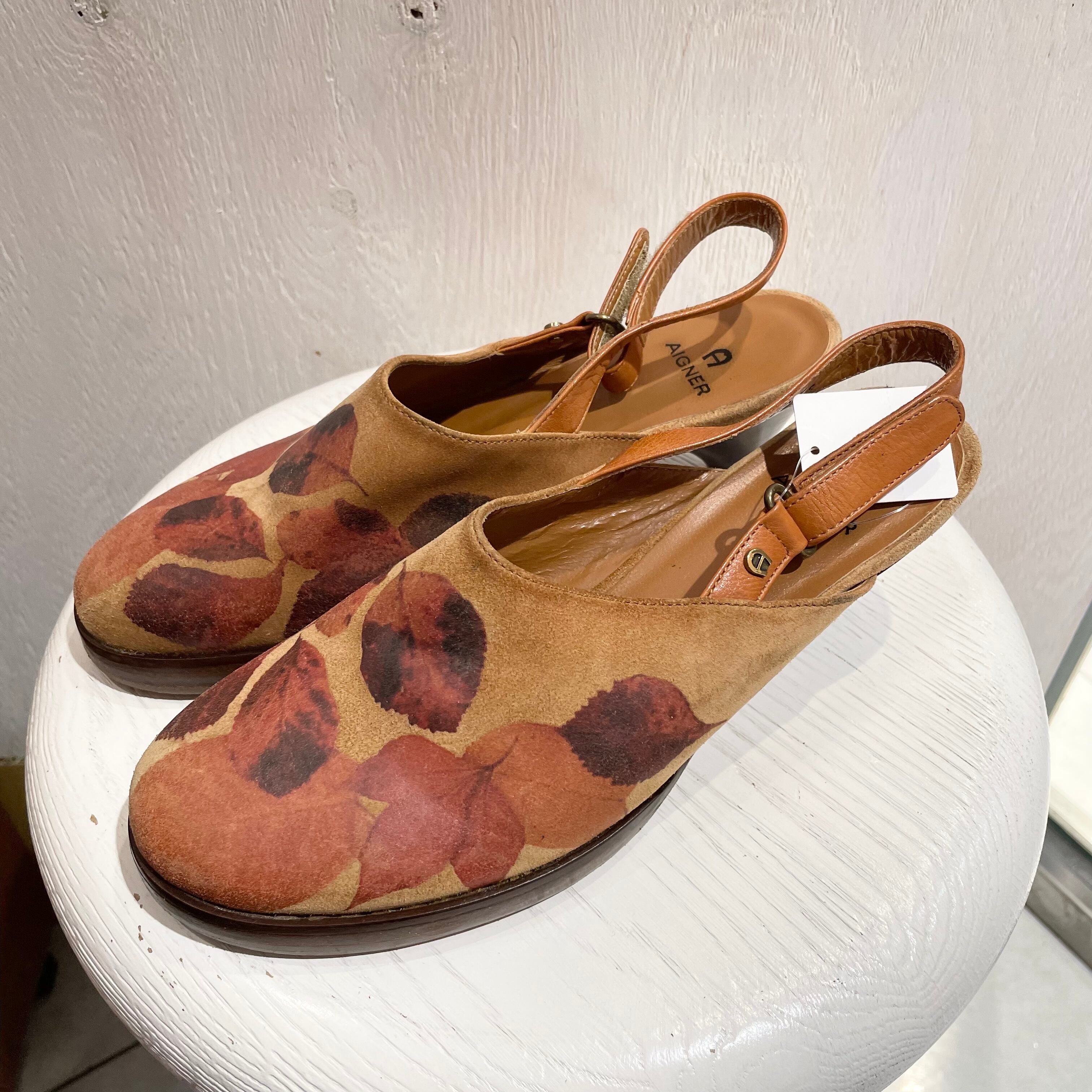 AIGNER/shoes/brown/heel/アイグナー/サボ/茶色/木の葉/スウェード/ヒール/靴