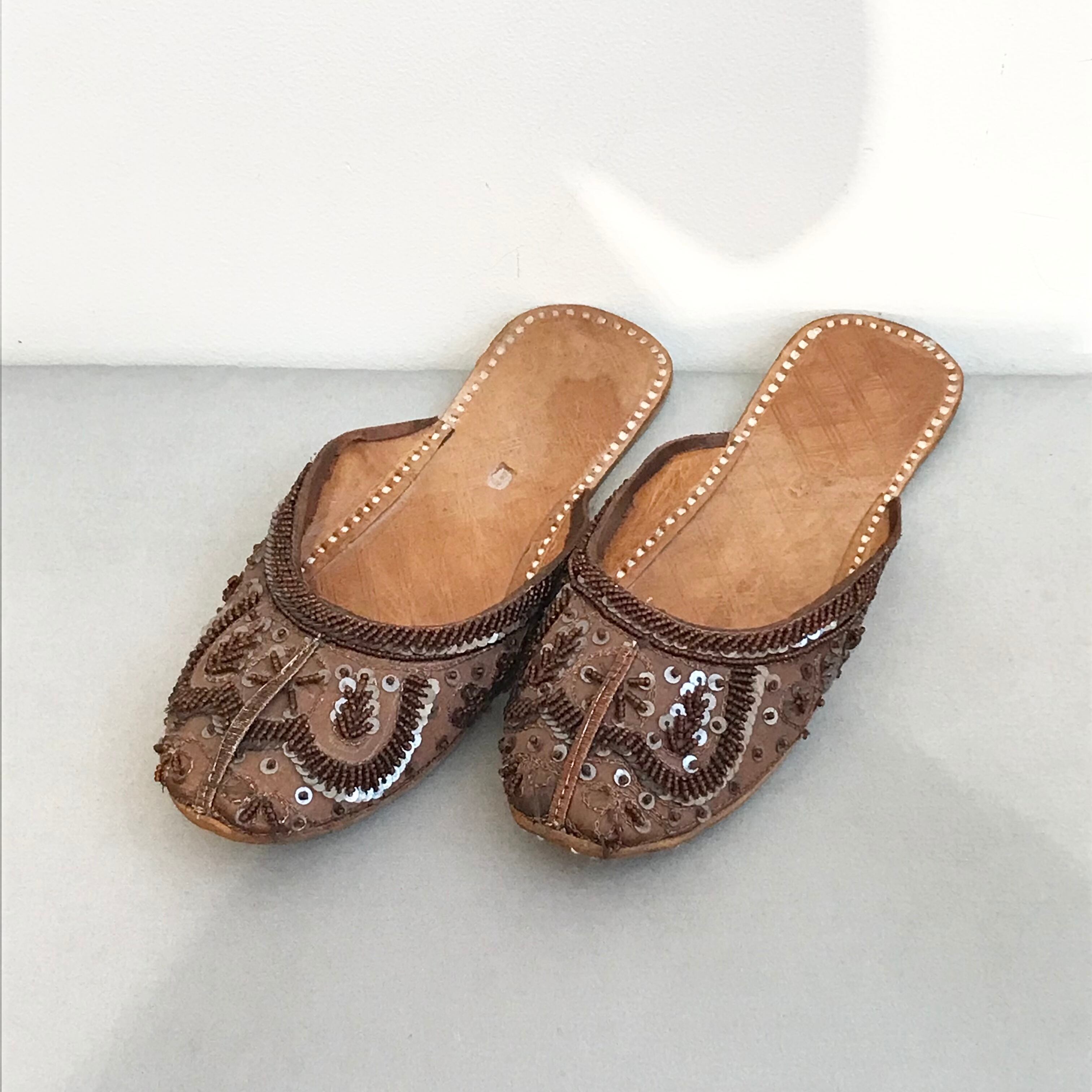 vintage/flatsandal/slippers/beads/brown/ヴィンテージ/フラットサンダル/スリッパ/ビーズ付き/茶色