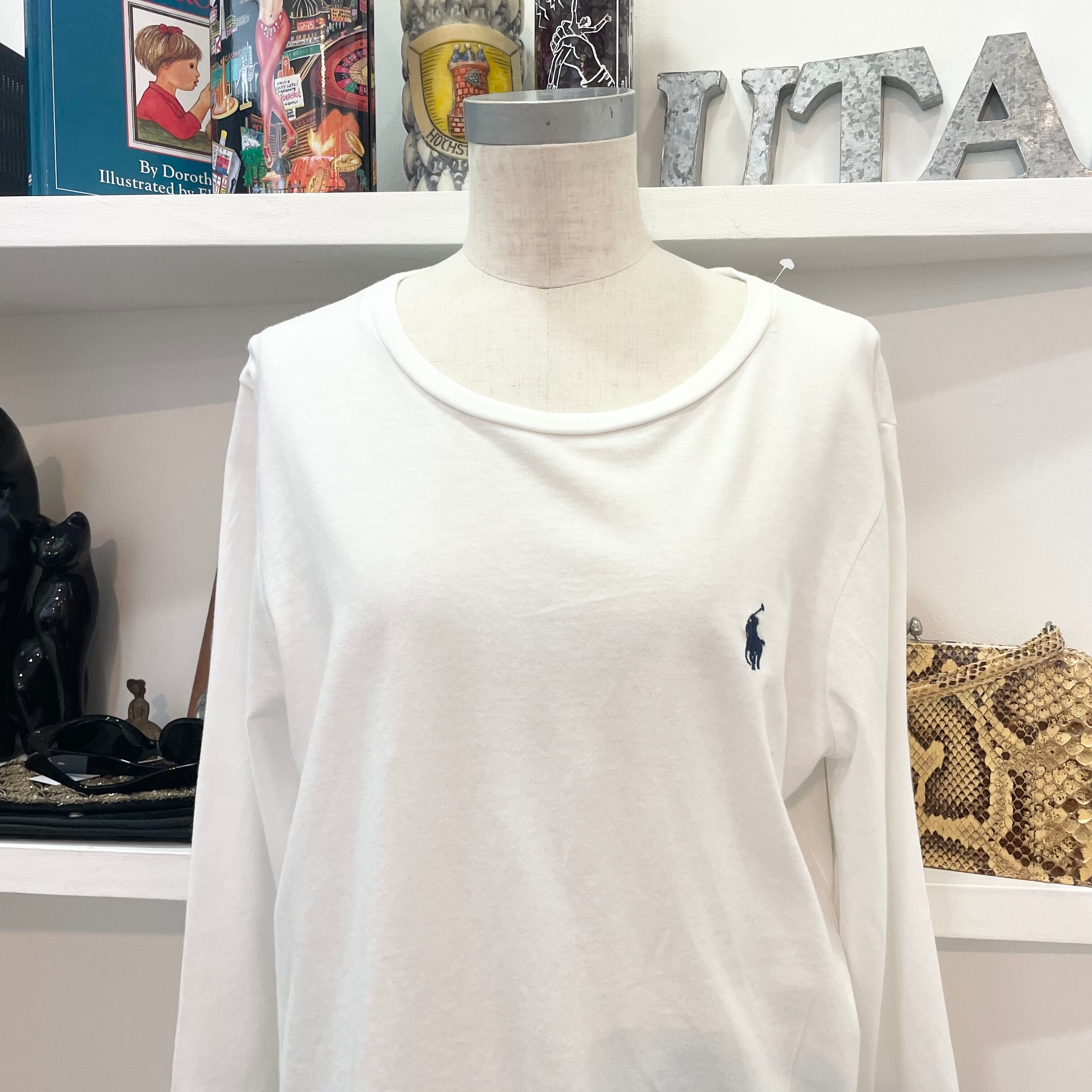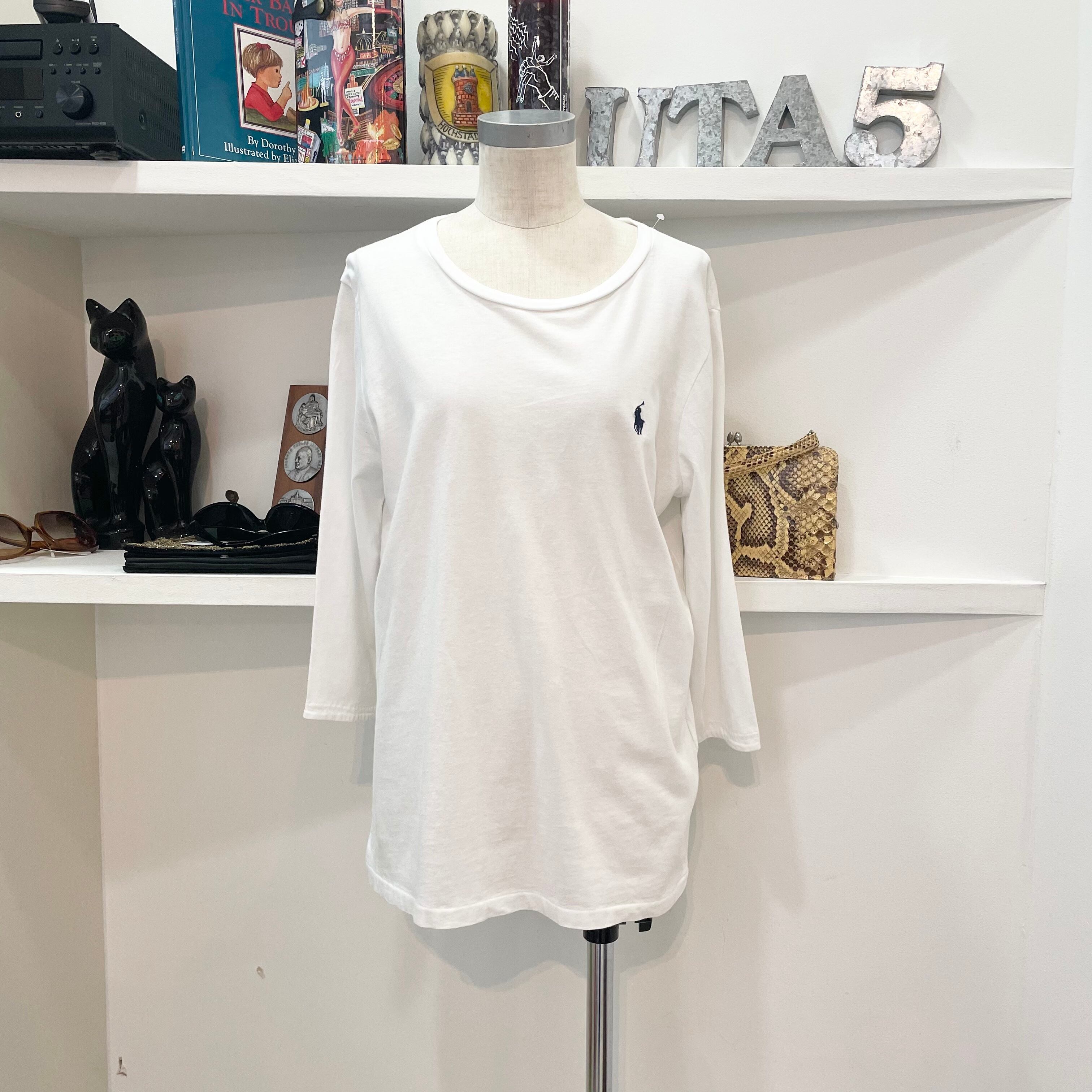RalphLauren/tshirt/simple/white/ラルフローレン/Tシャツ/長袖/7分丈/シンプル/ロゴ/白/薄め
