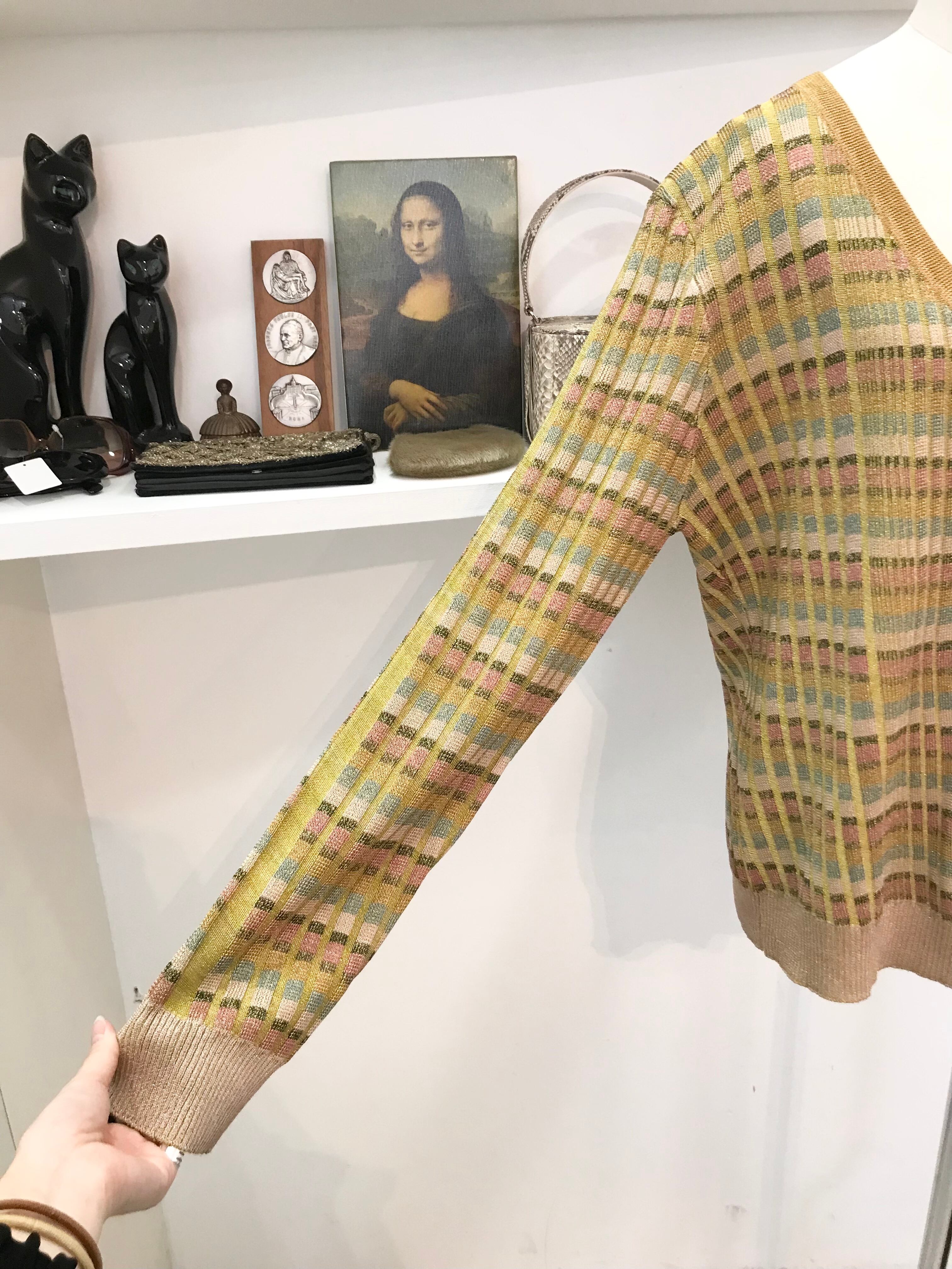 vintage/cardigan/knit/yellow/border/ヴィンテージ/カーディガン/ニット/黄色系/マルチボーダー/ラメ