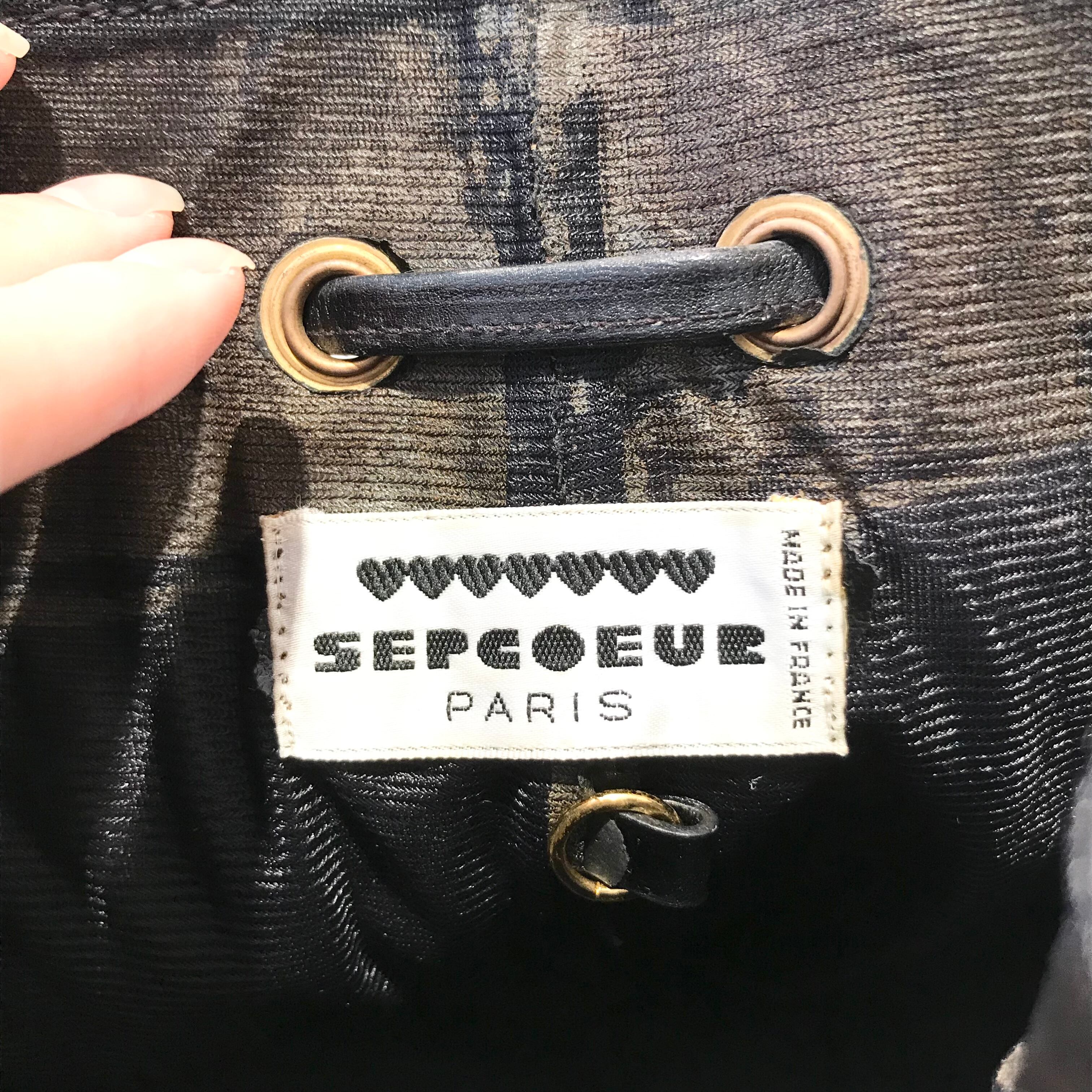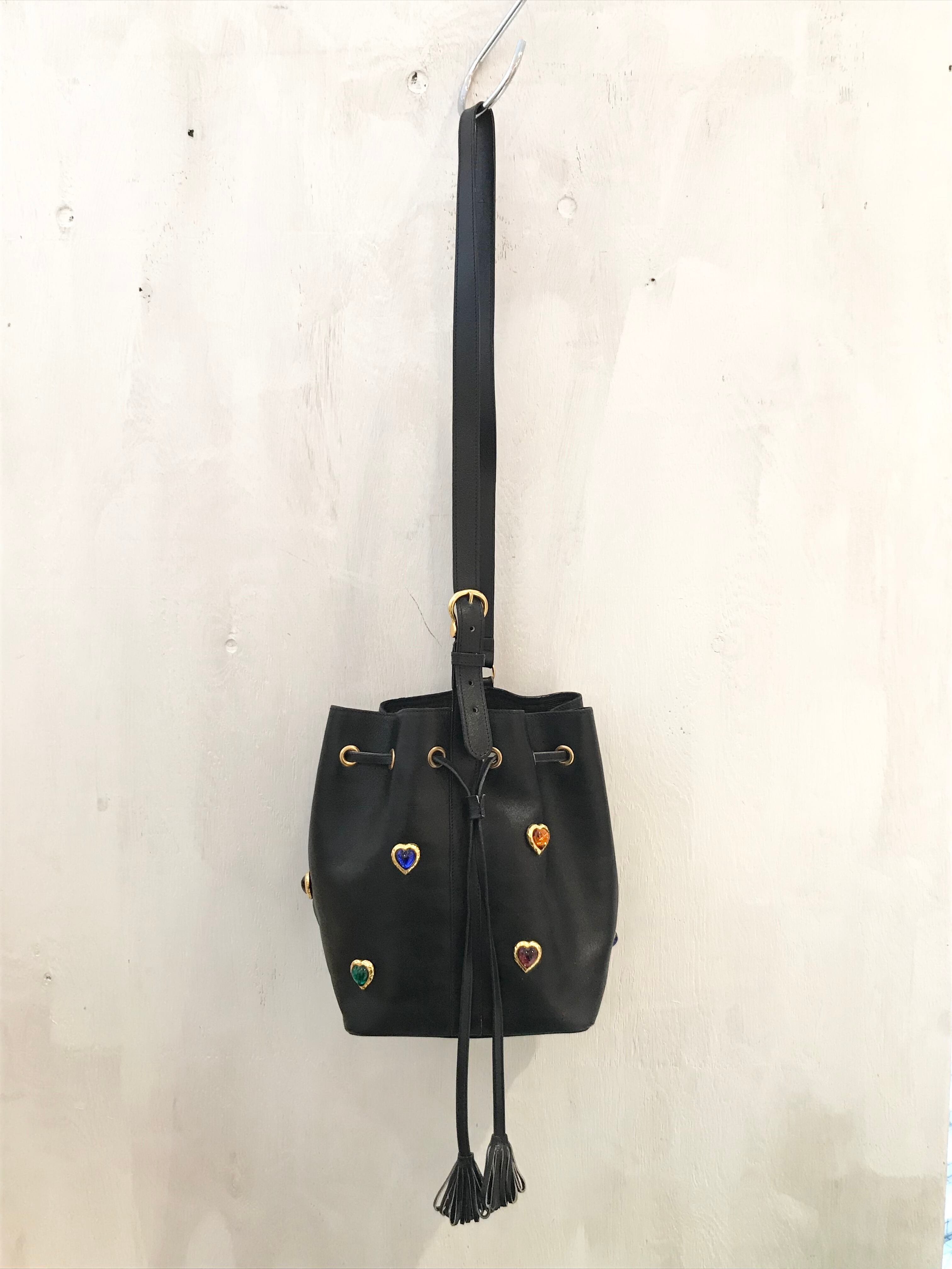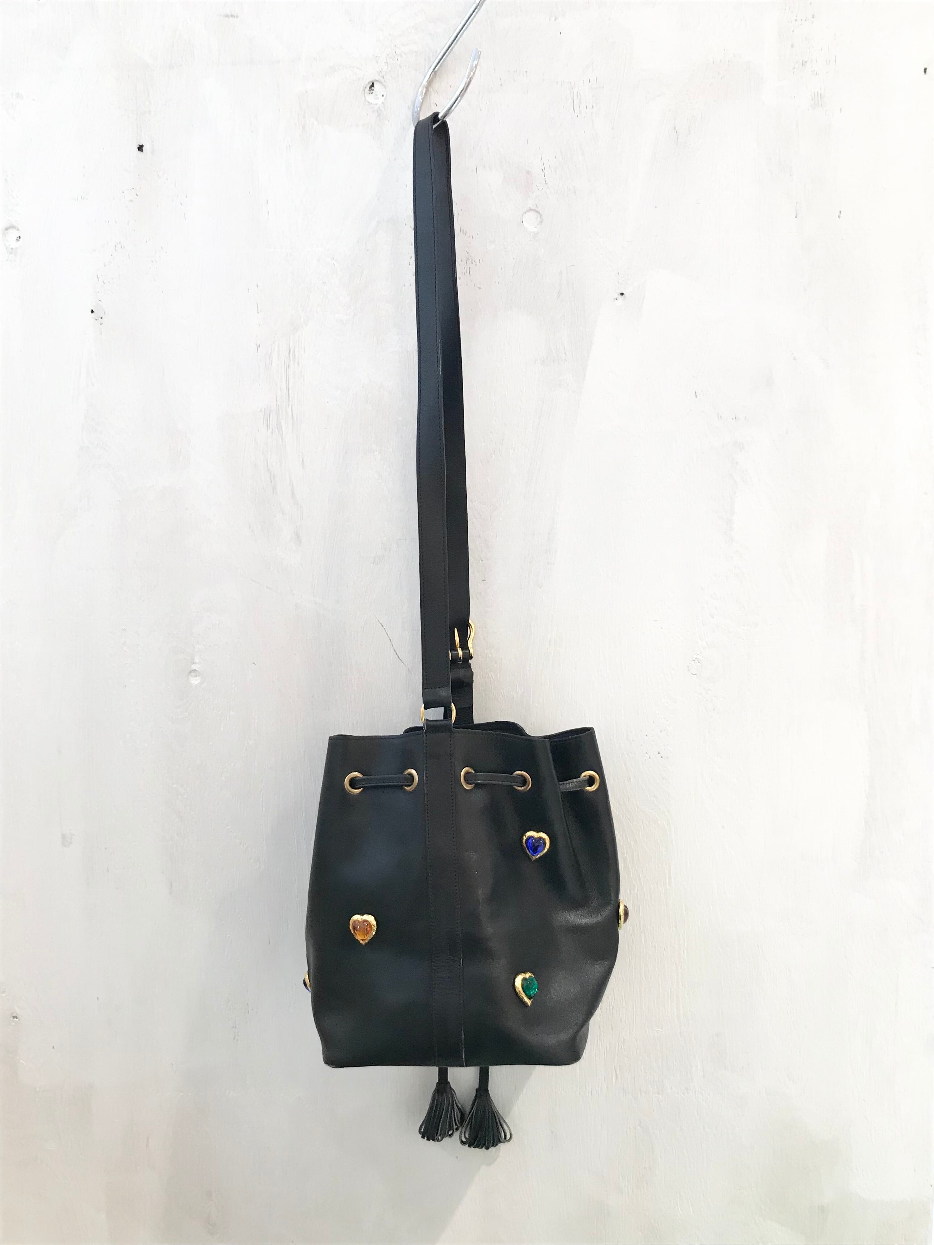 vintage/shoulderbag/black/leather/ハートモチーフ付き/巾着型/ショルダーバッグ/ヴィンテージ/レザー/黒色