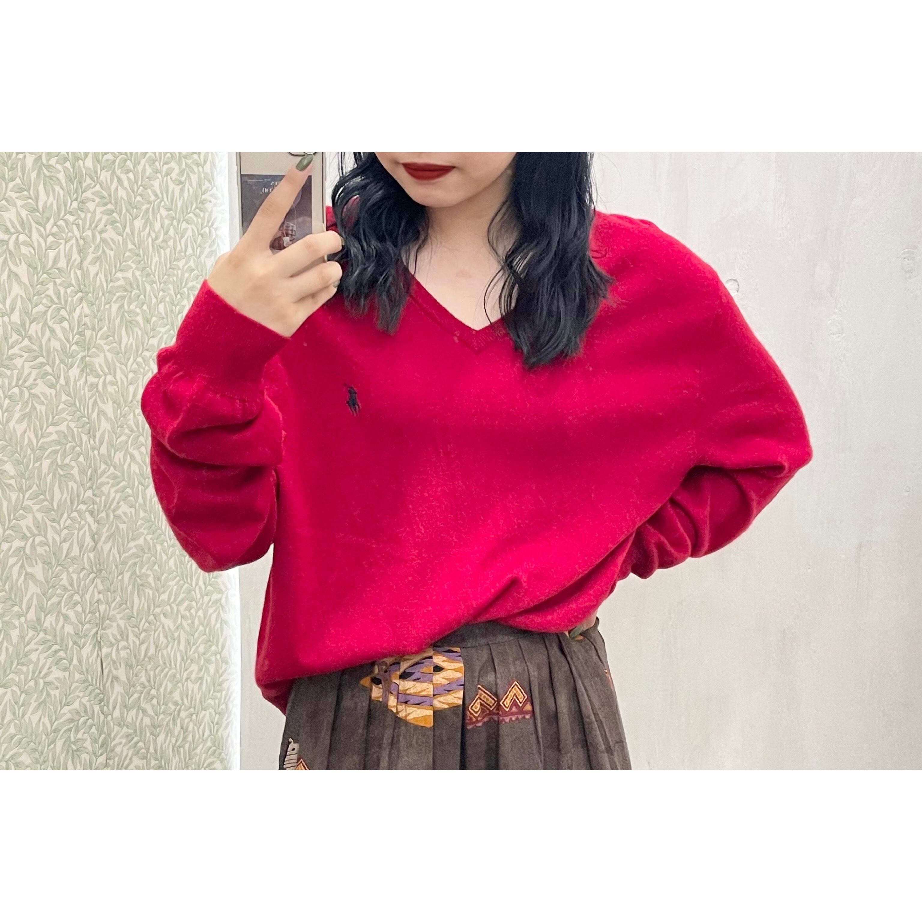 Ralph Lauren/knit/red/XXLsize/big/vneck/ラルフローレン/ニット/赤/大きめ/XXLサイズ/Vネック