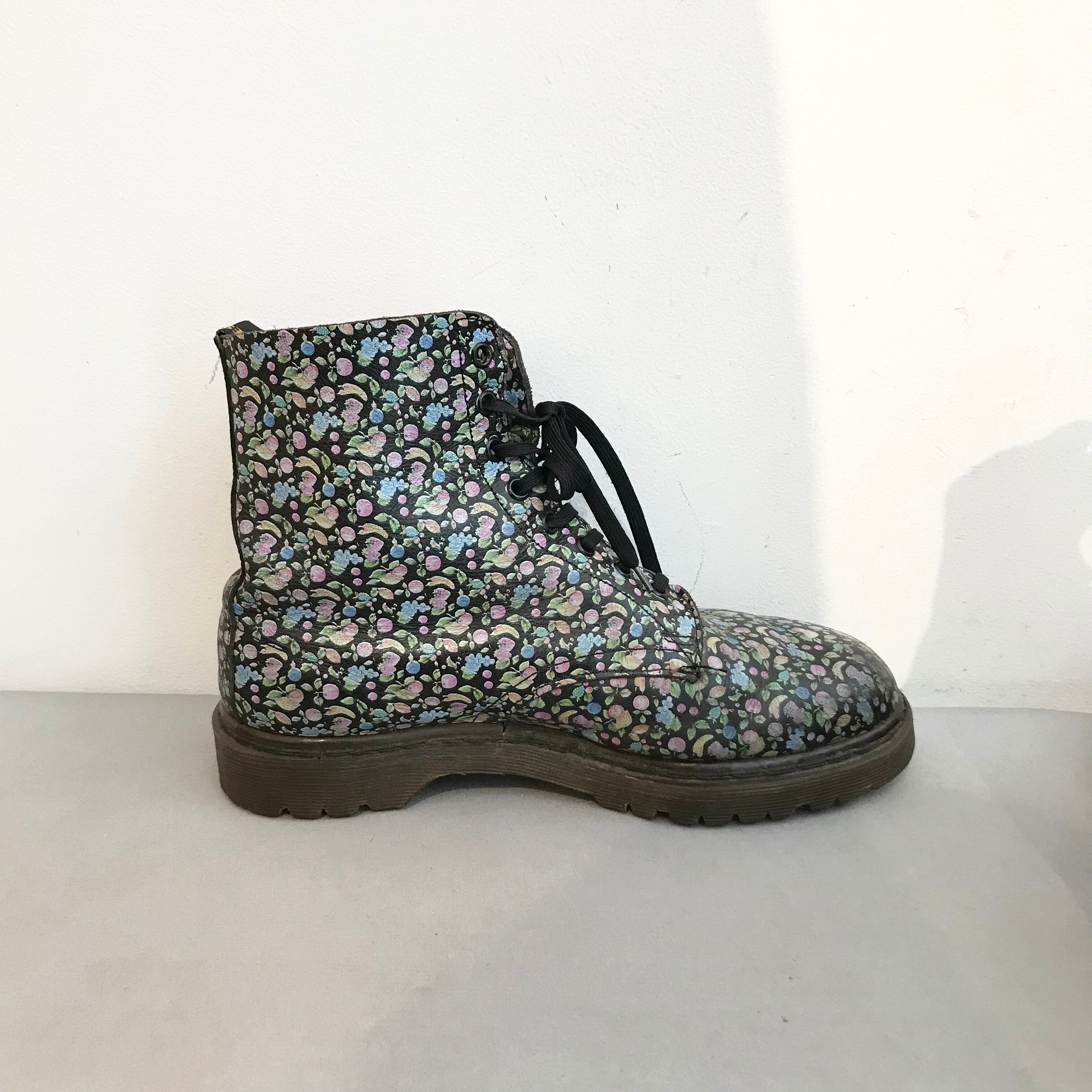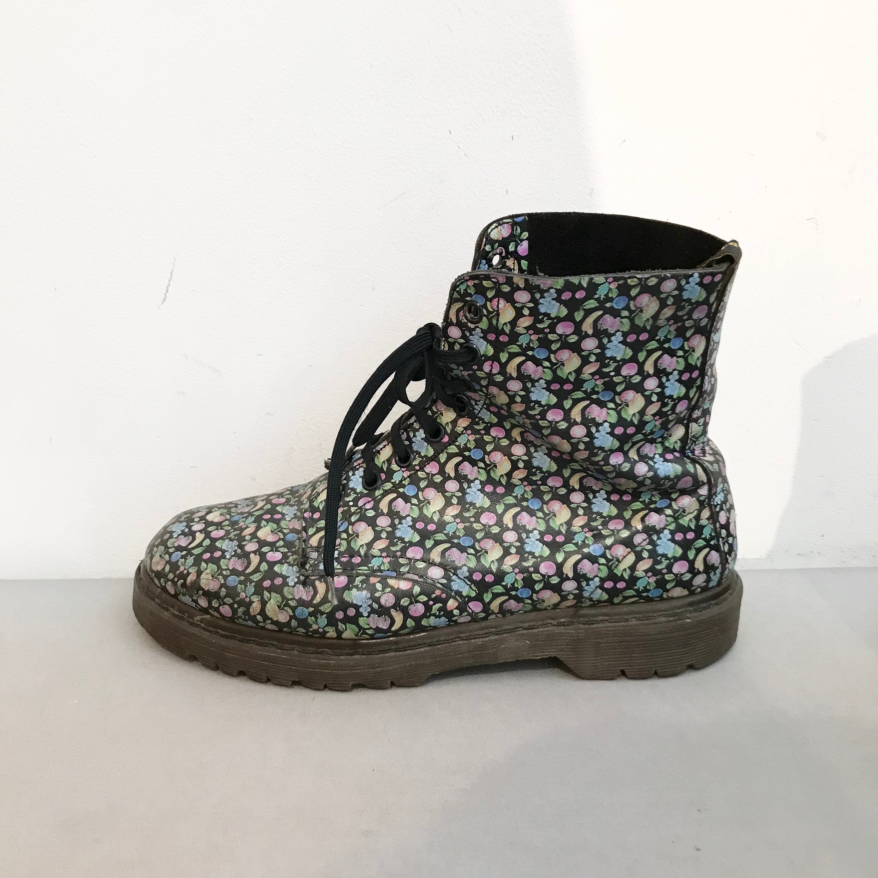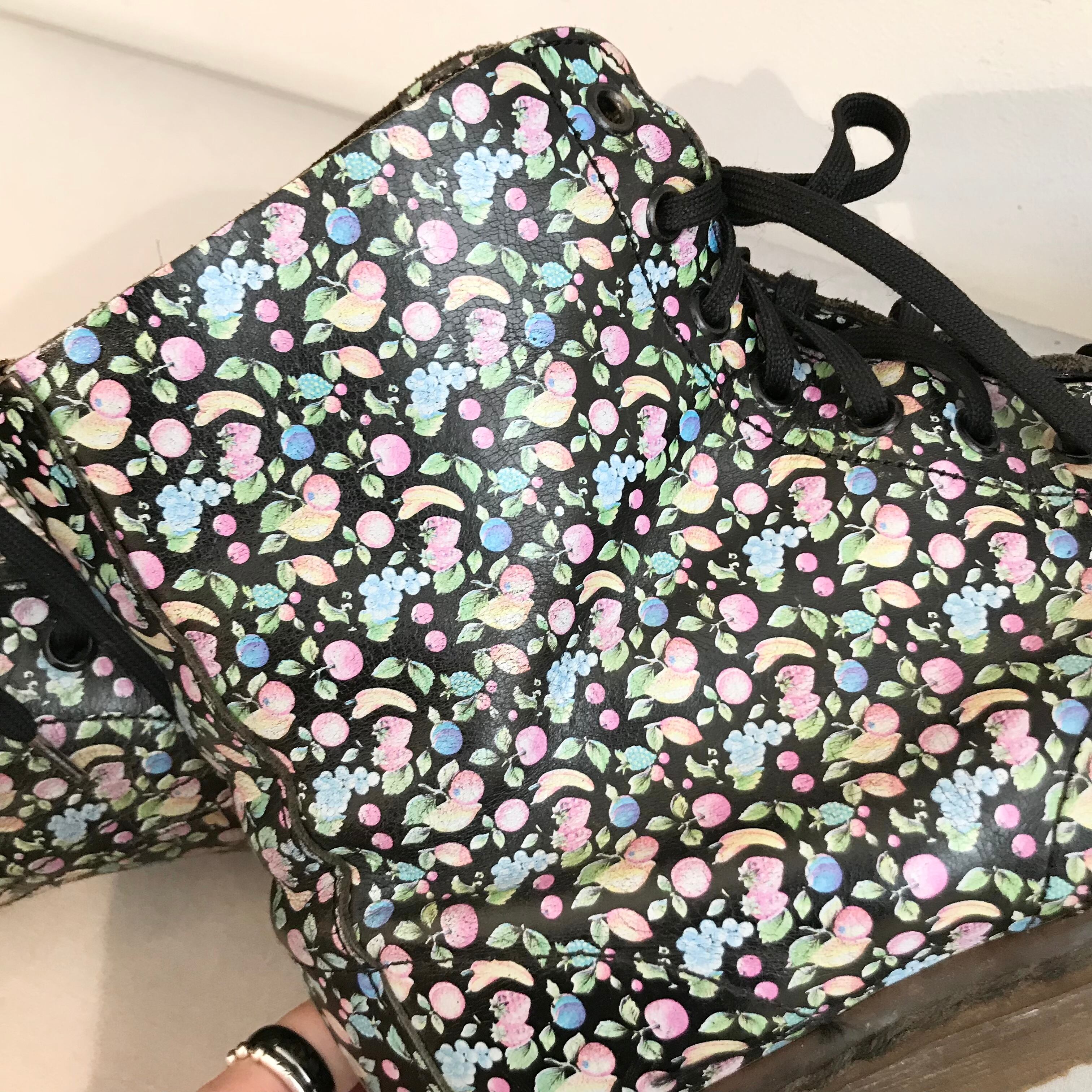 Dr.Martin/shortboots/leather/ドクターマーチン/ブーツ/フルーツ柄/黒色/レザー