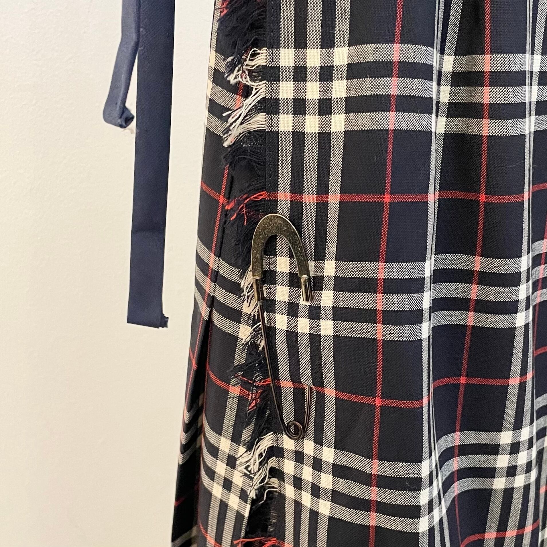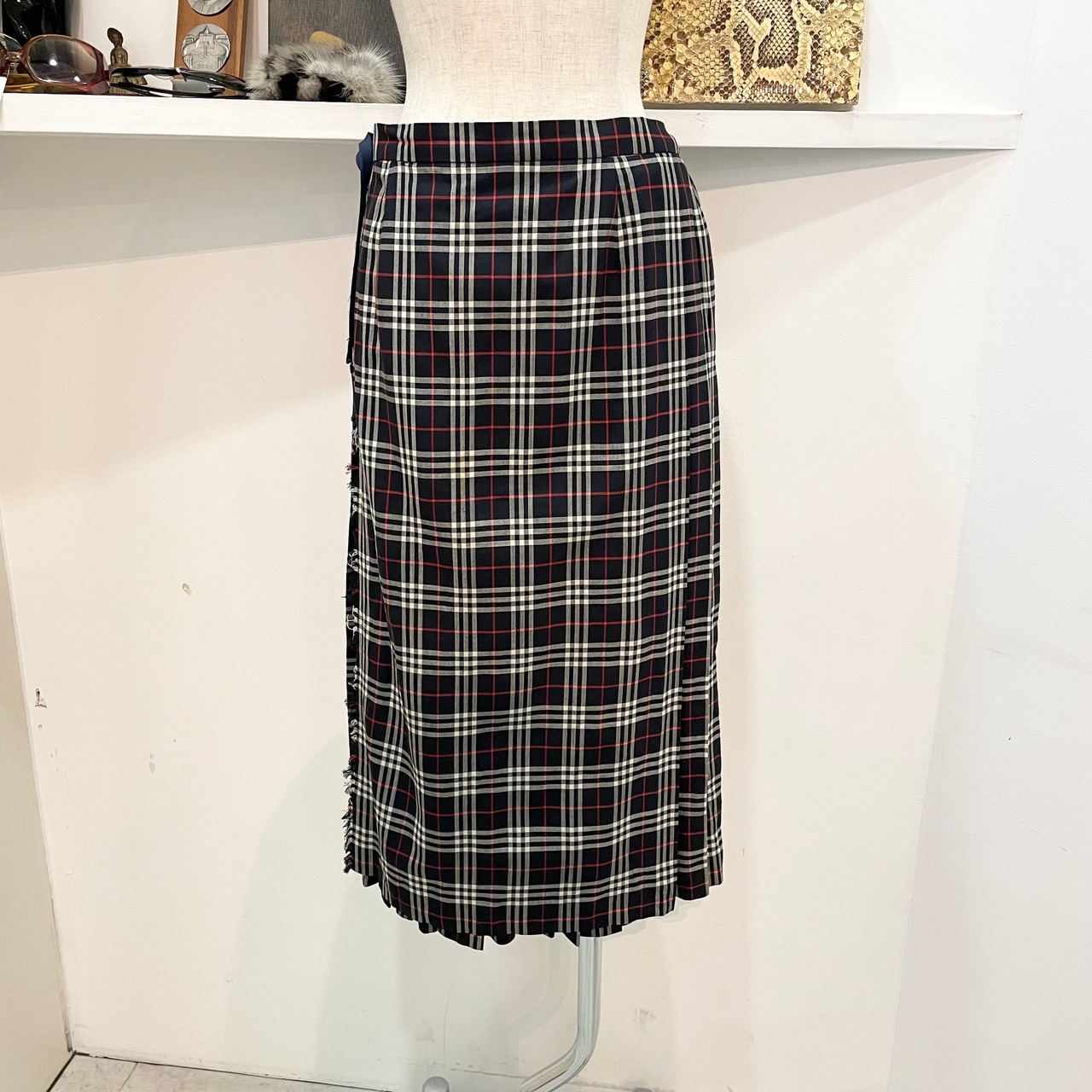 burberry/skirt/check/pleats/long/navy/white/red/バーバリー/スカート/プリーツ/チェック柄/ロングスカート/紺/赤/白/42