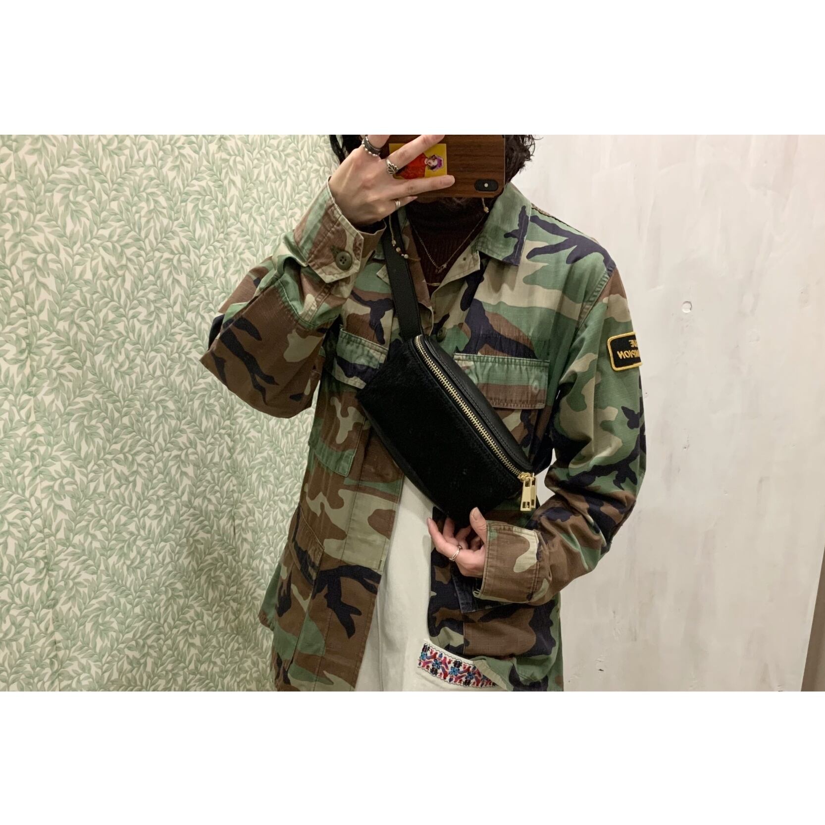 vintage/westpouch/far/ヴィンテージ/ウエストポーチ/黒色/ファー