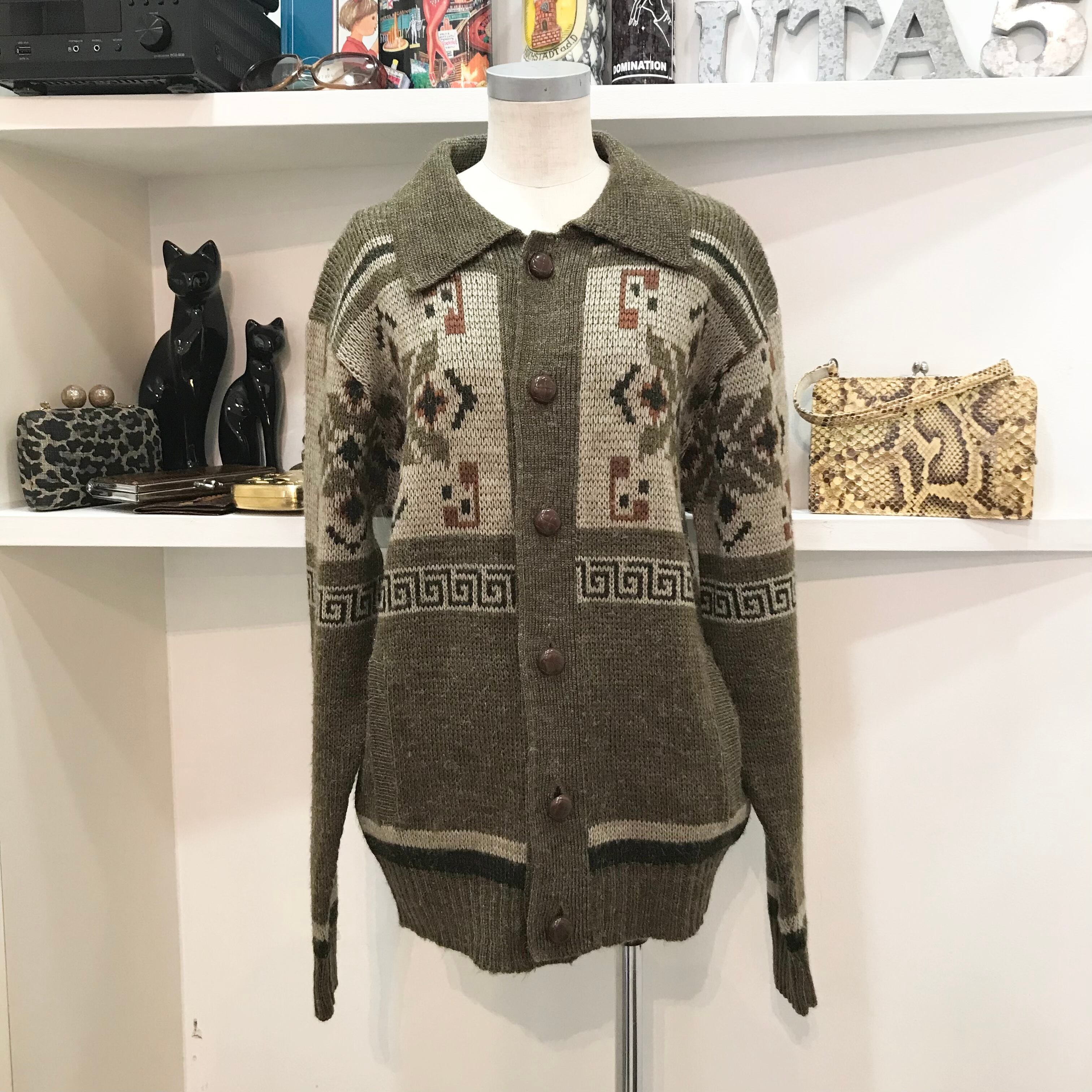 vintage/knit/cardigan/olive/brown/s/ヴィンテージ/ニット/カーディガン/襟付き/オリーブ/茶色