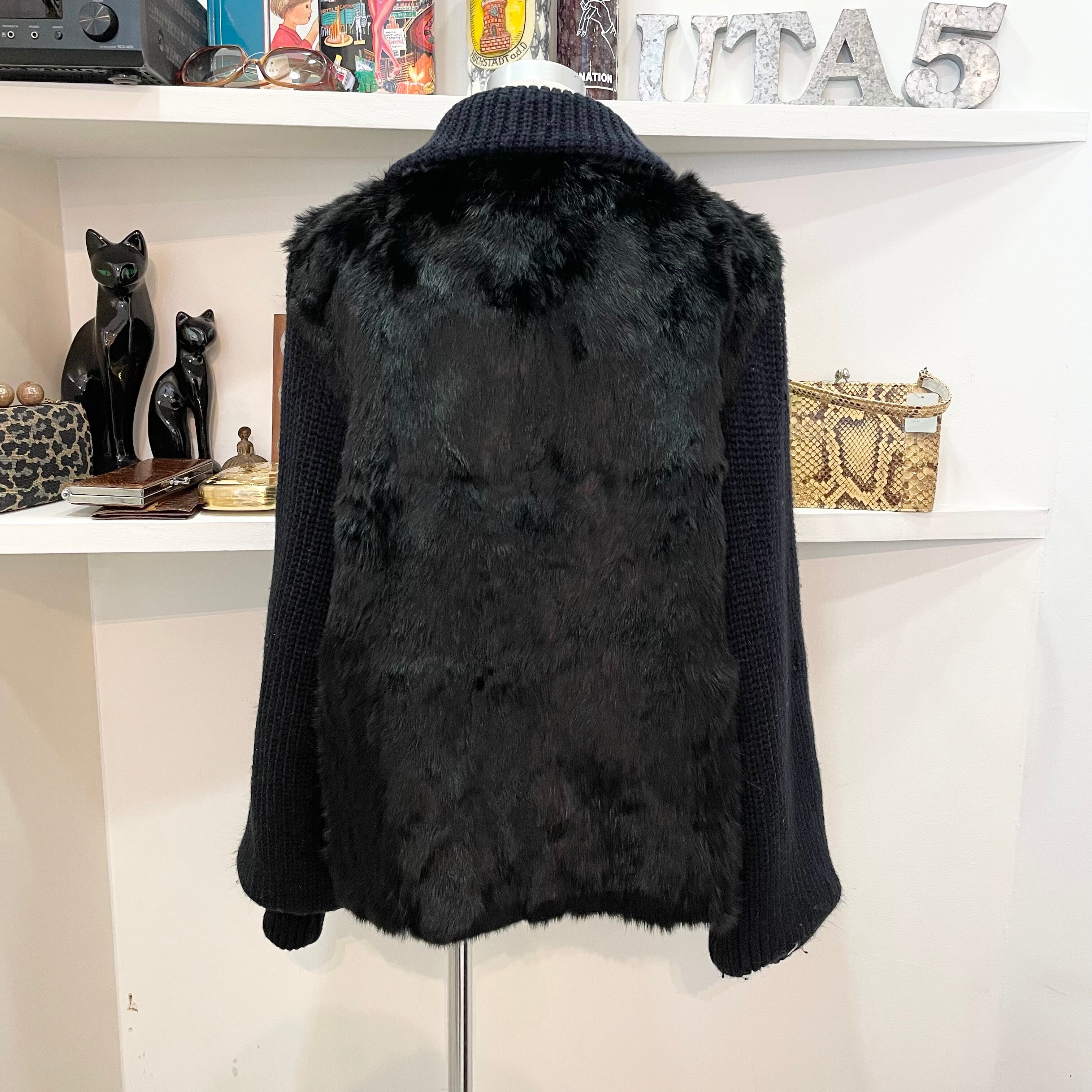 vintage/outer/jumper/far/knit/navy/black/ビンテージ/ヴィンテージ/アウター/ジャンパー/ファー/ニット/ネイビー/紺/黒