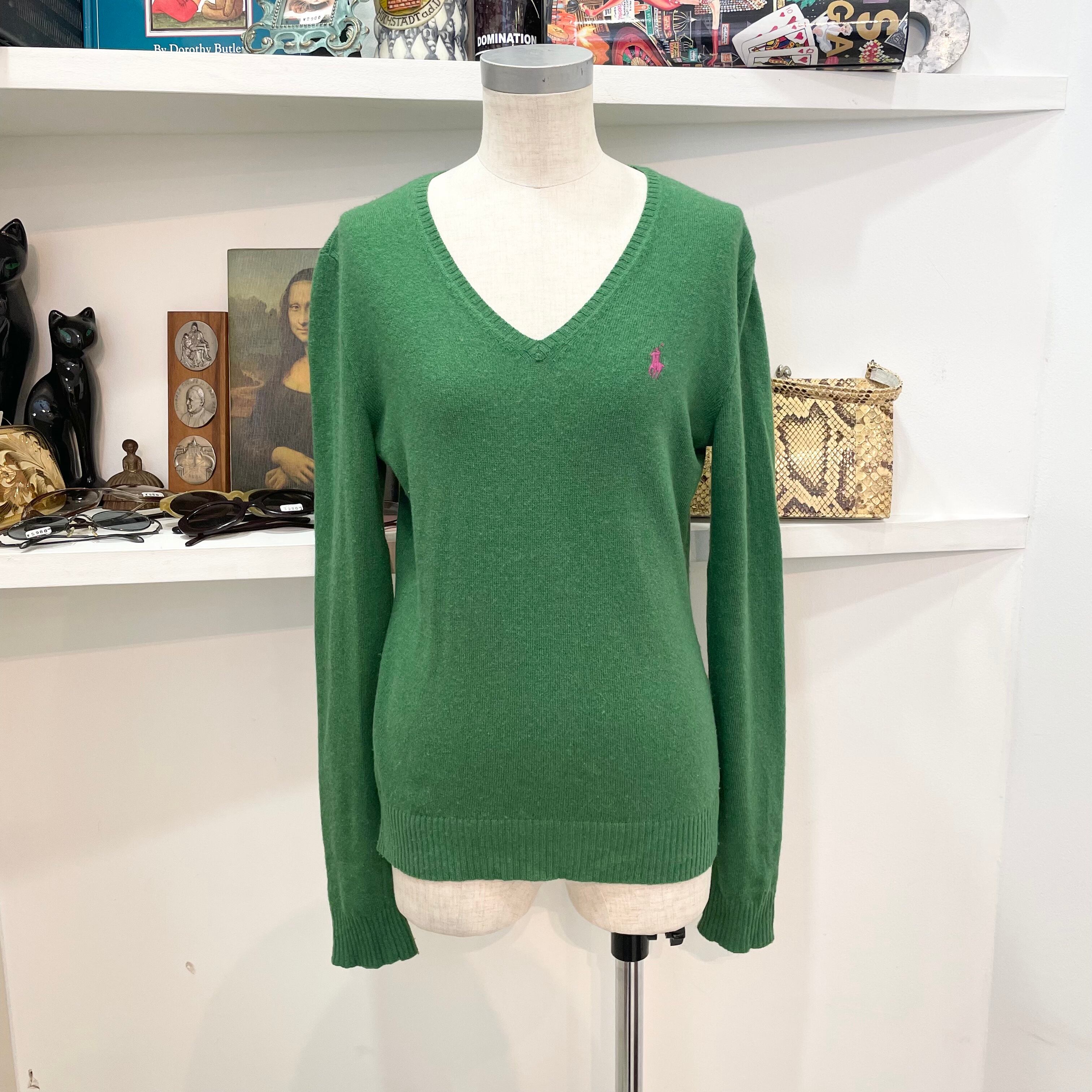 RalphLauren/knit/green/vneck/Msize/ラルフローレン/ニット/緑/Vネック/Mサイズ
