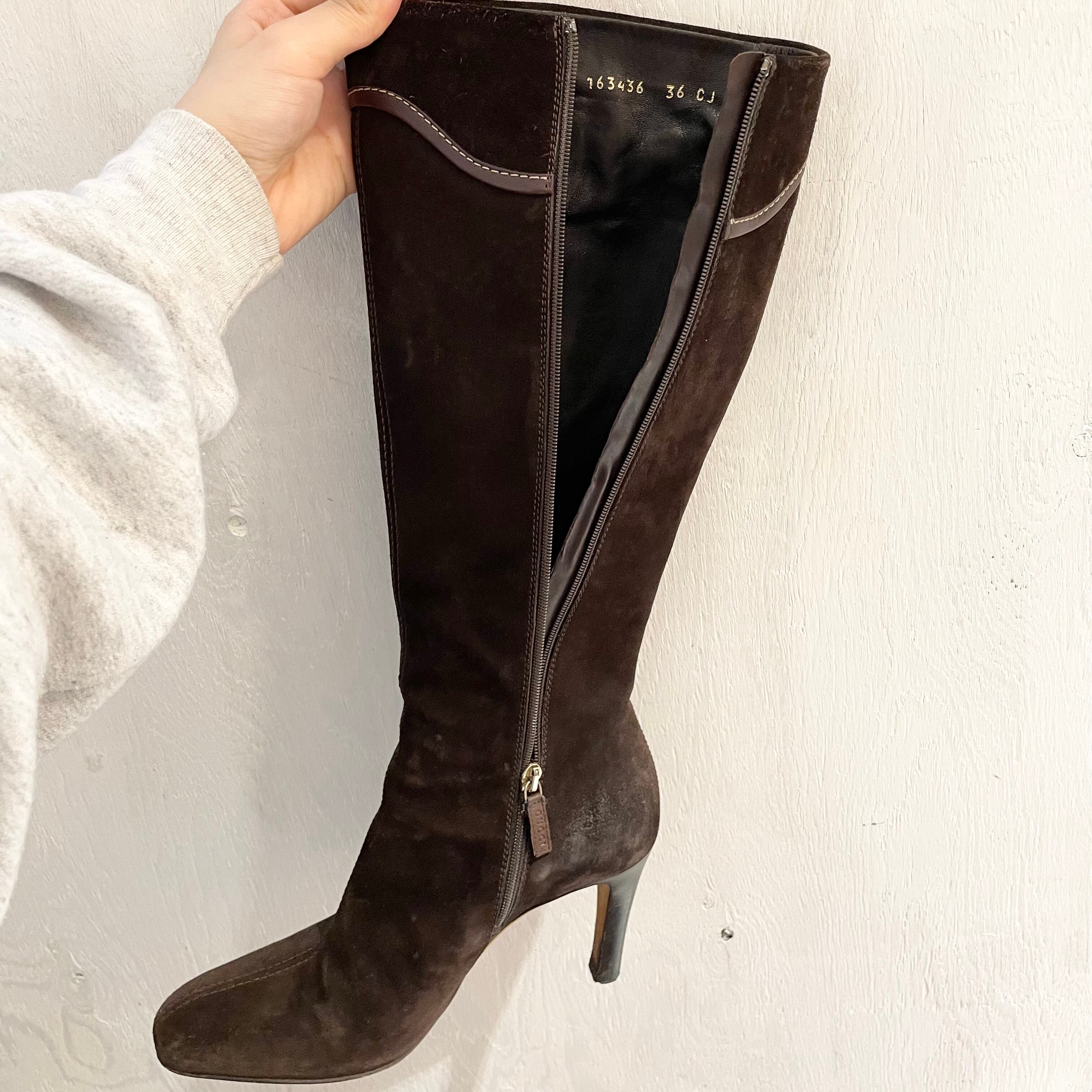 GUCCI/longboots/heel/suede/darkbrown/グッチ/ロングブーツ/スウェード/ヒール/ダークブラウン