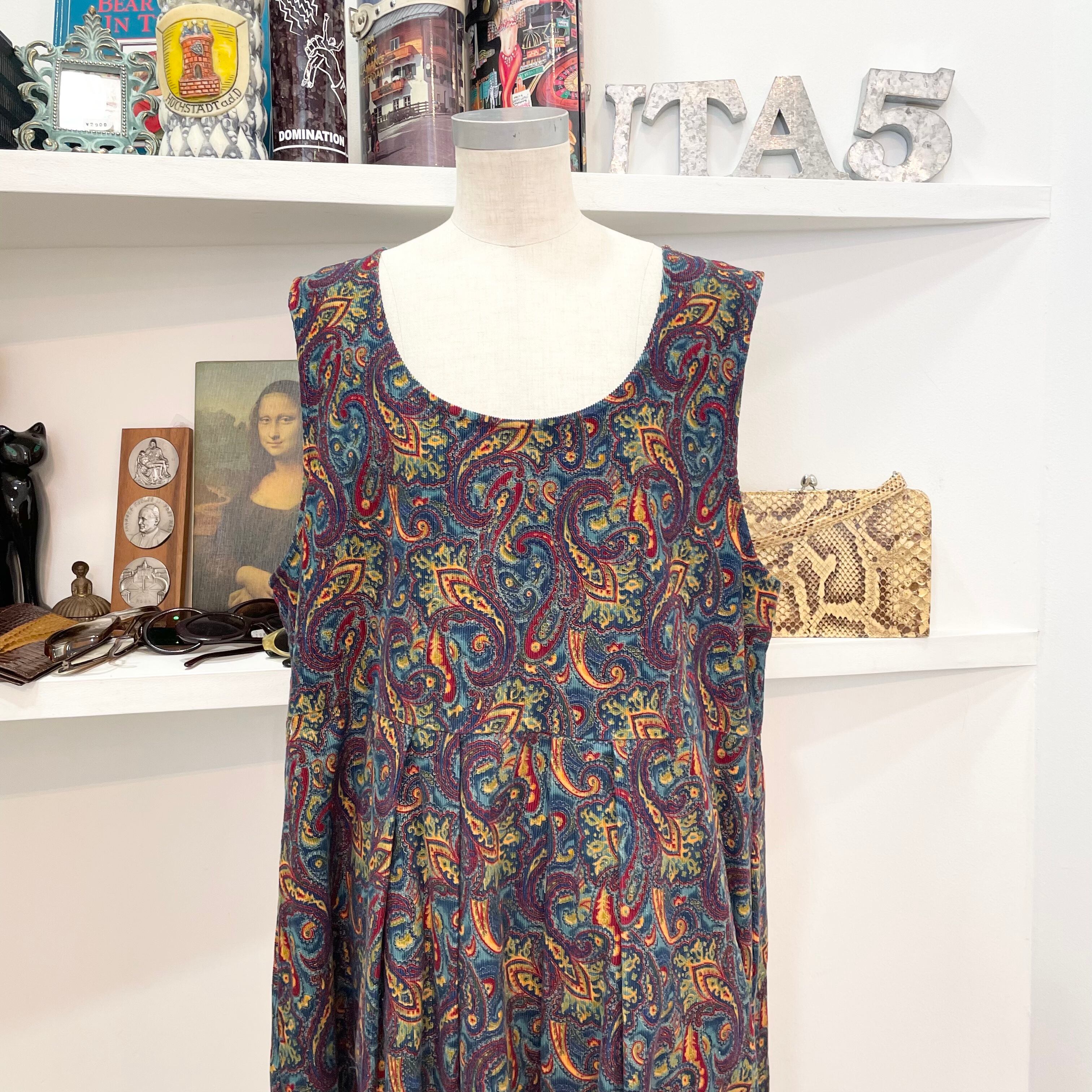 vintage/one-piece/ethnic/long/ビンテージ/ヴィンテージ/ワンピース/ペイズリー柄/エスニック/コーデュロイ/長め/ノースリーブ
