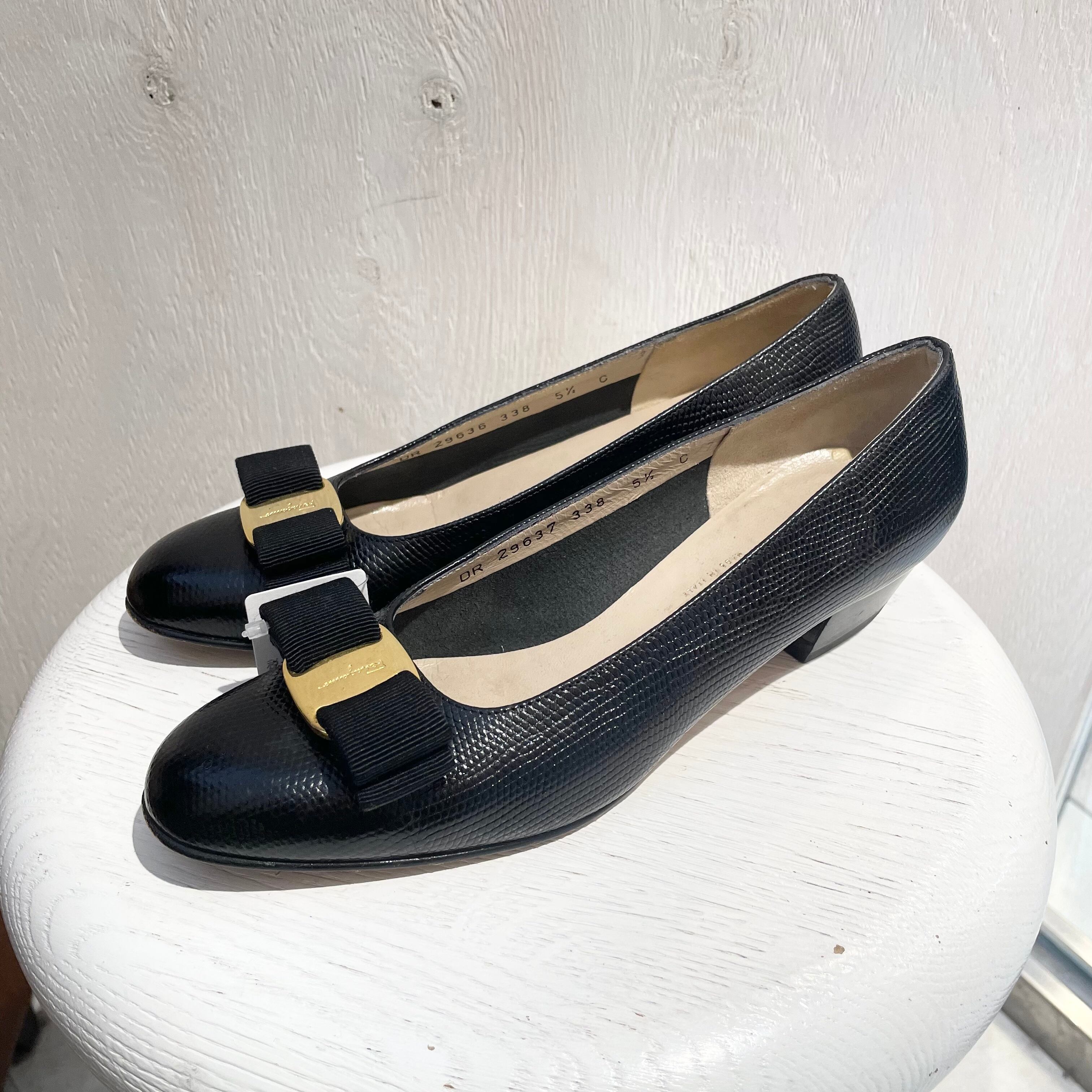 Ferragamo/pumps/black/gold/heel/フェラガモ/パンプス/黒/金/ヒール/クロコ