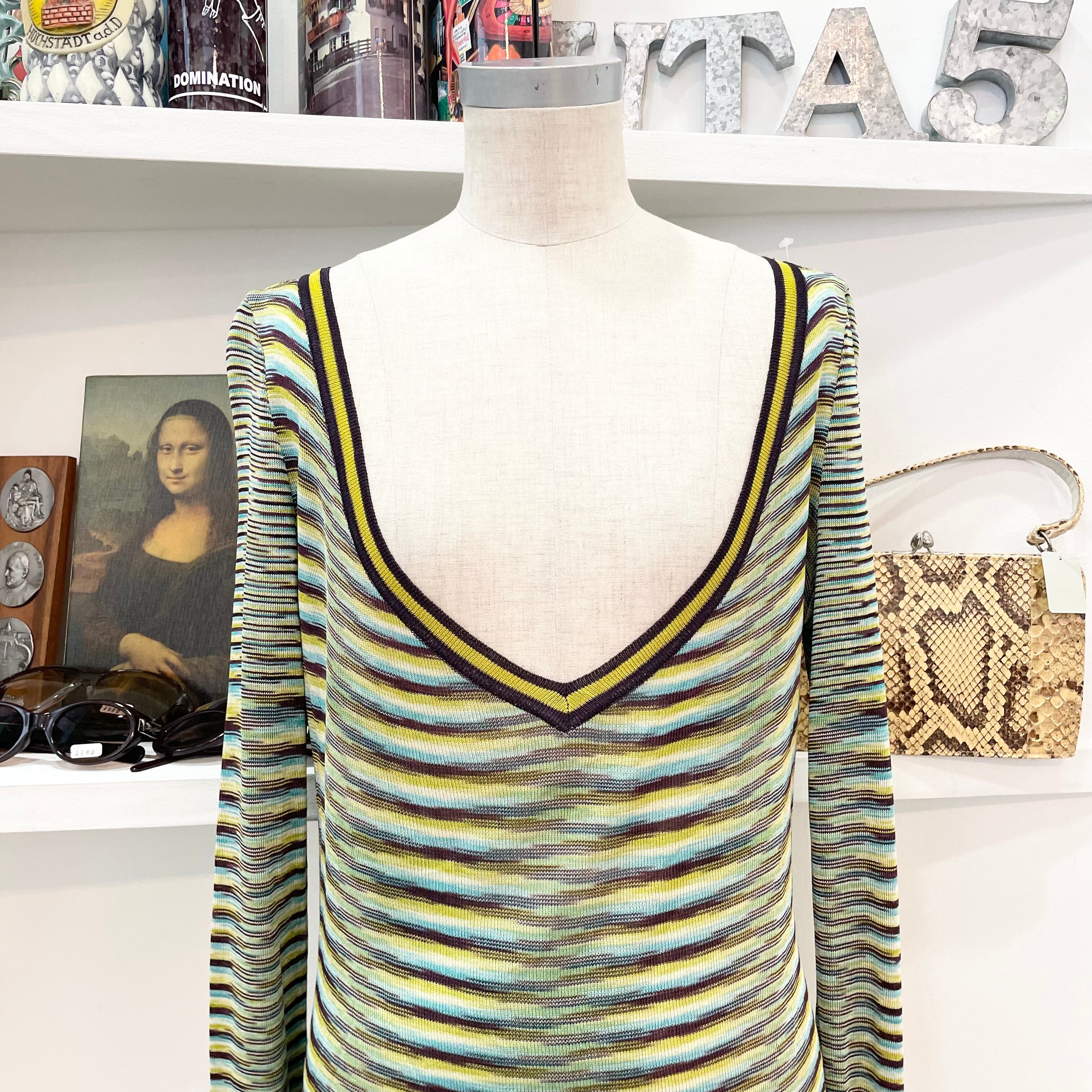 MISSONI/tops/border/blue/yellow/vneck/ミッソーニ/トップス/Vネック/ボーダー/青系/黄色系