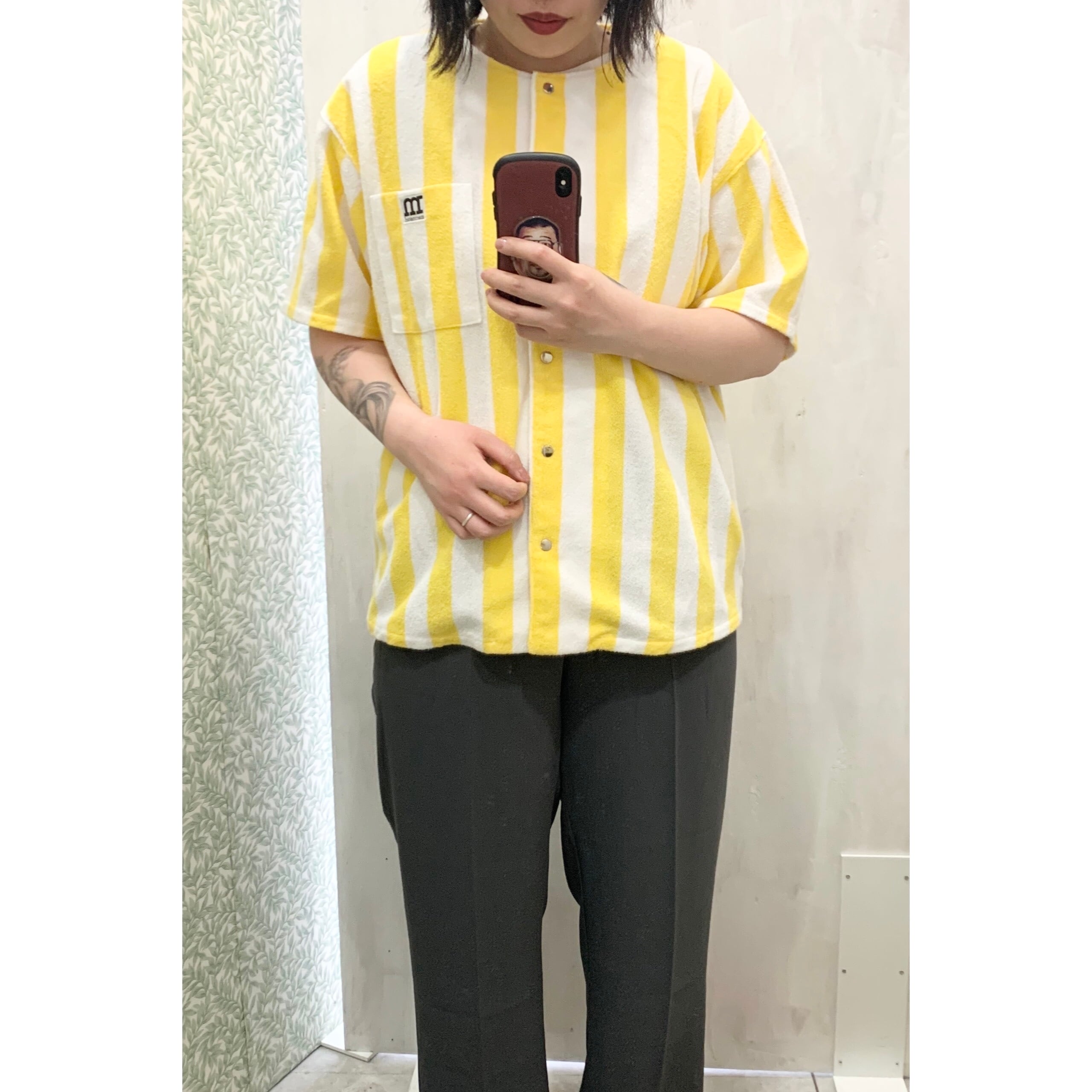 marimekko/tops/stripe/yellow/white/pile/マリメッコ/トップス/ストライプ/黄色/白/パイル生地