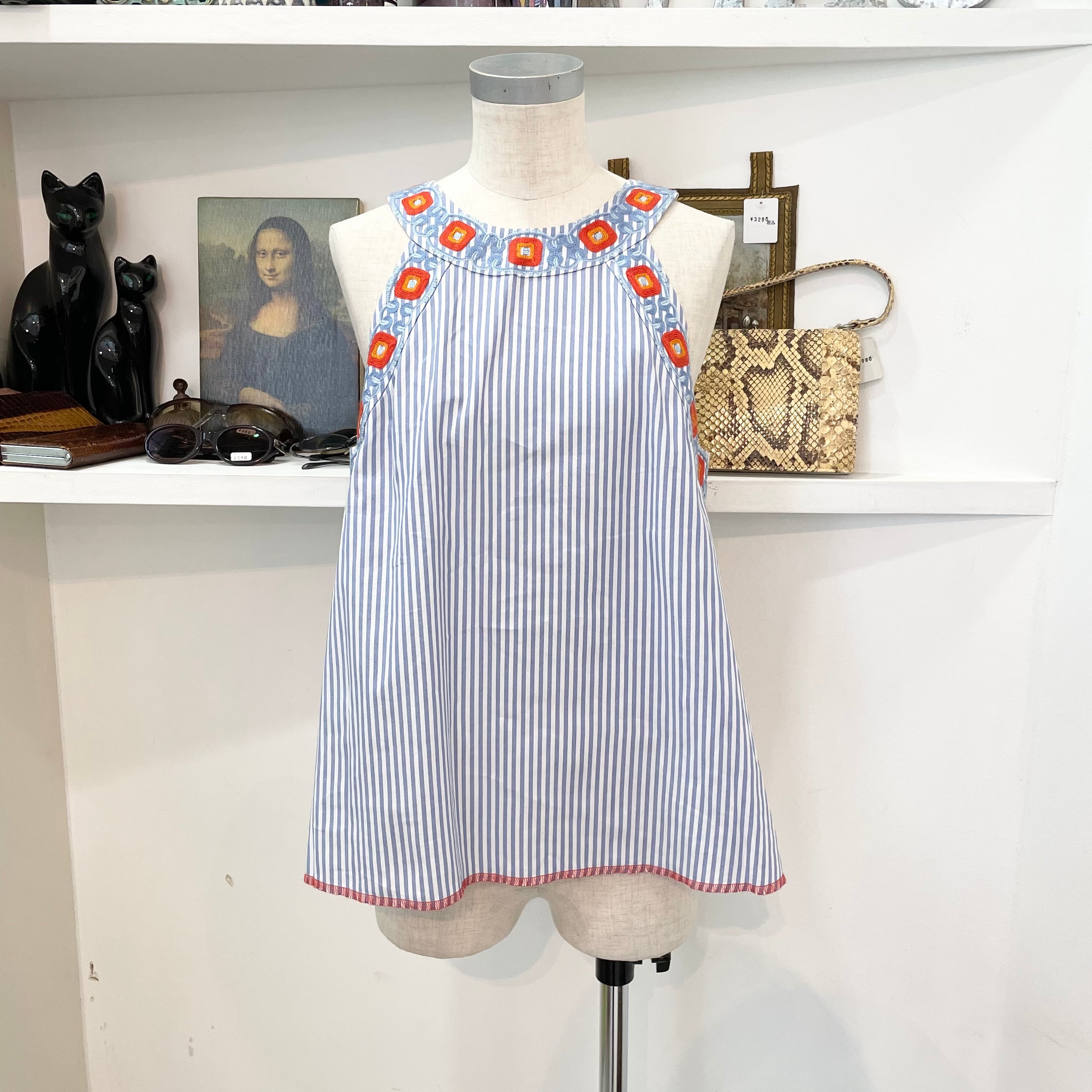 TORY BURCH/stripe/tank top/blue/orange/トリーバーチ/ストライプ/タンクトップ/ベスト/刺繍/青/オレンジ/2/タグ付き