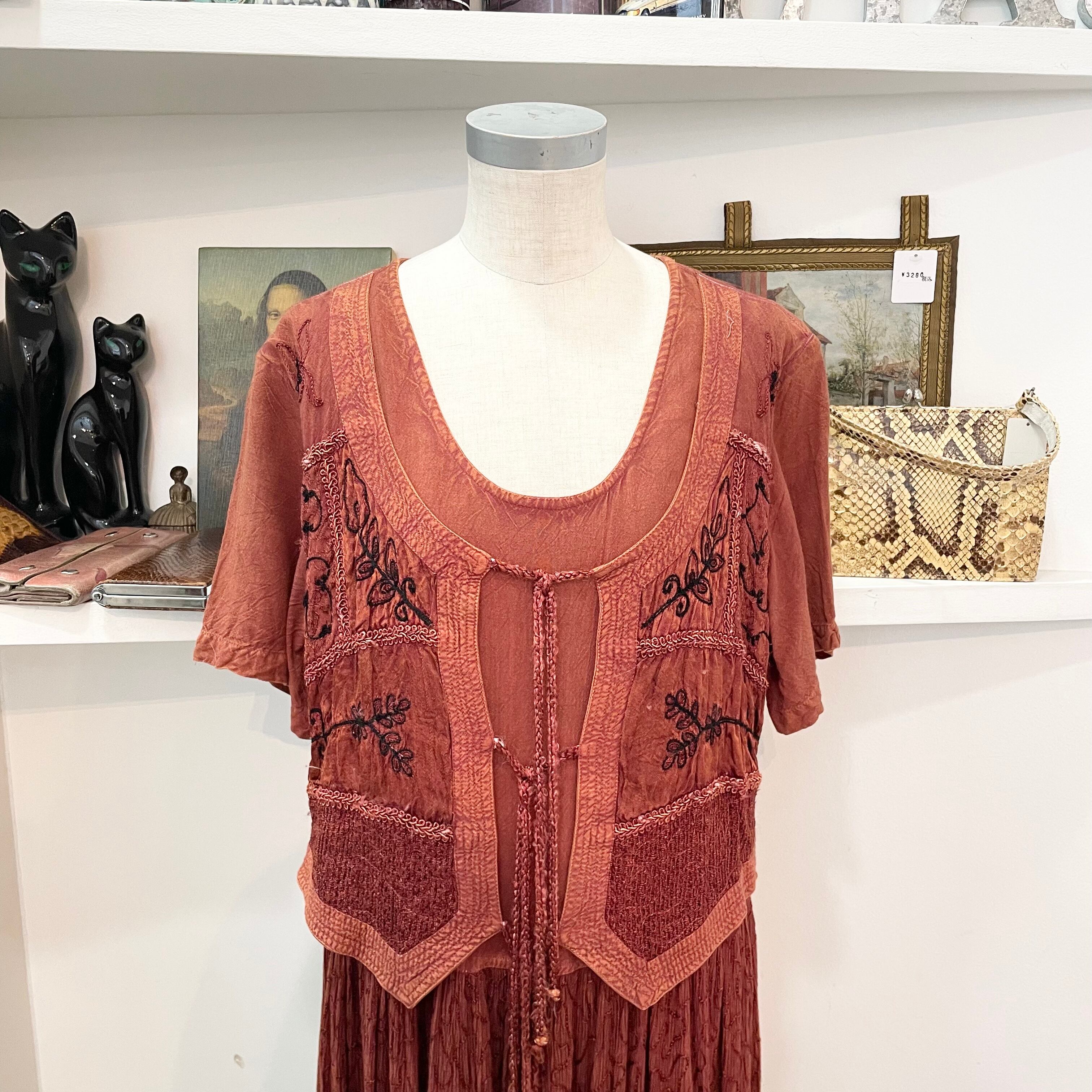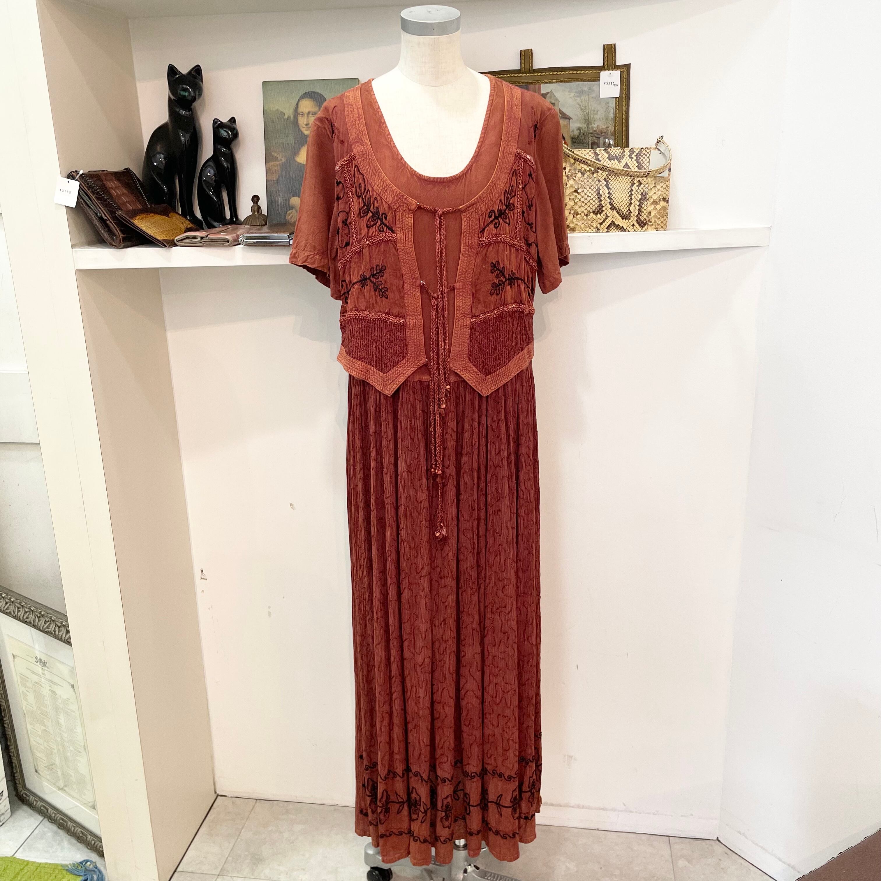 vintage/one-piece/ethnic/long/orange/ビンテージ/ヴィンテージ/ワンピース/エスニック/刺繍/長め