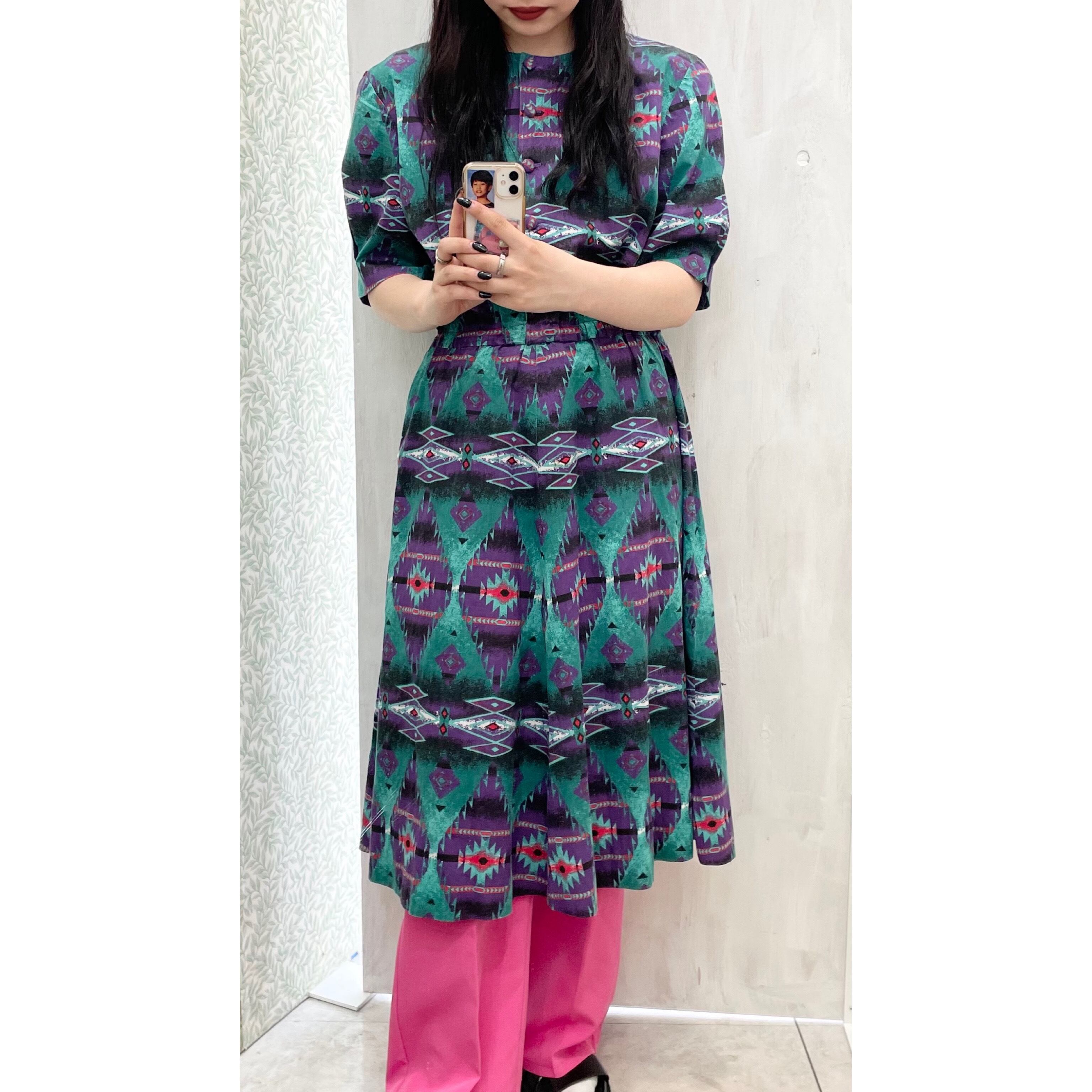 vintage/one-piece/purple/turquoise/ヴィンテージ/ビンテージ/ワンピース/個性的/紫/ターコイズ