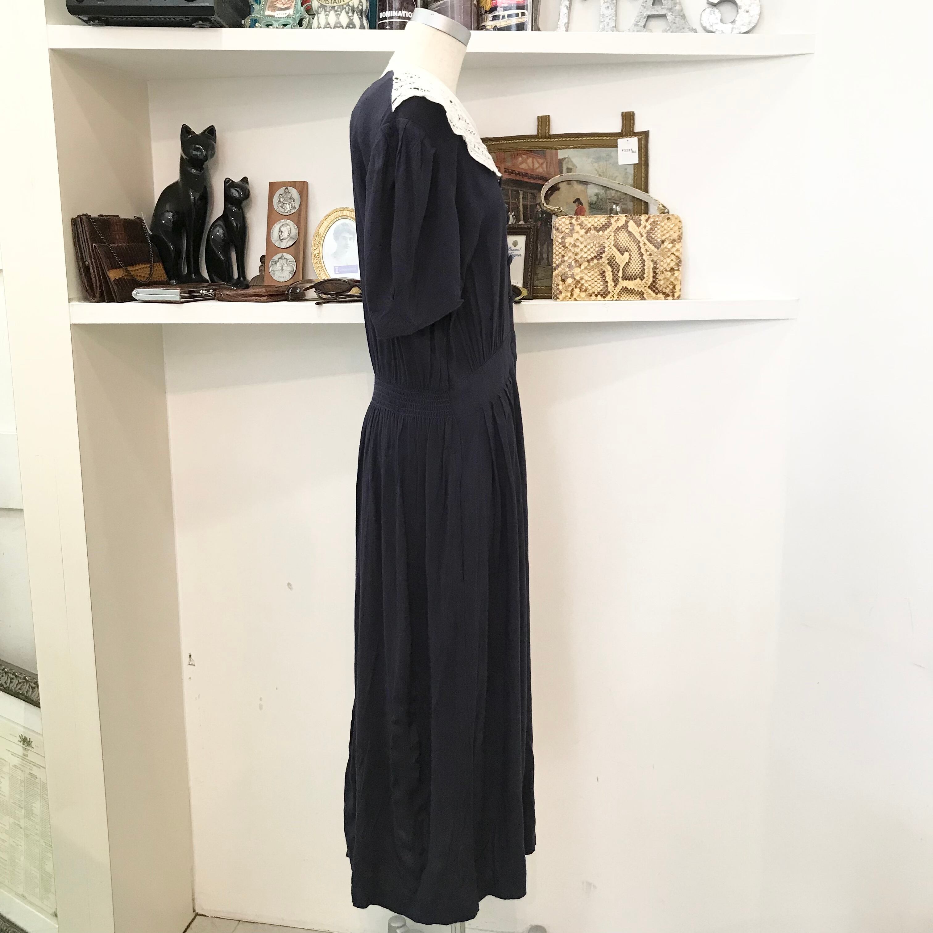 vintage/onepiece/10/navy/long/short sleeve/ビンテージ/ワンピース/レース/ネイビー/半袖/長め