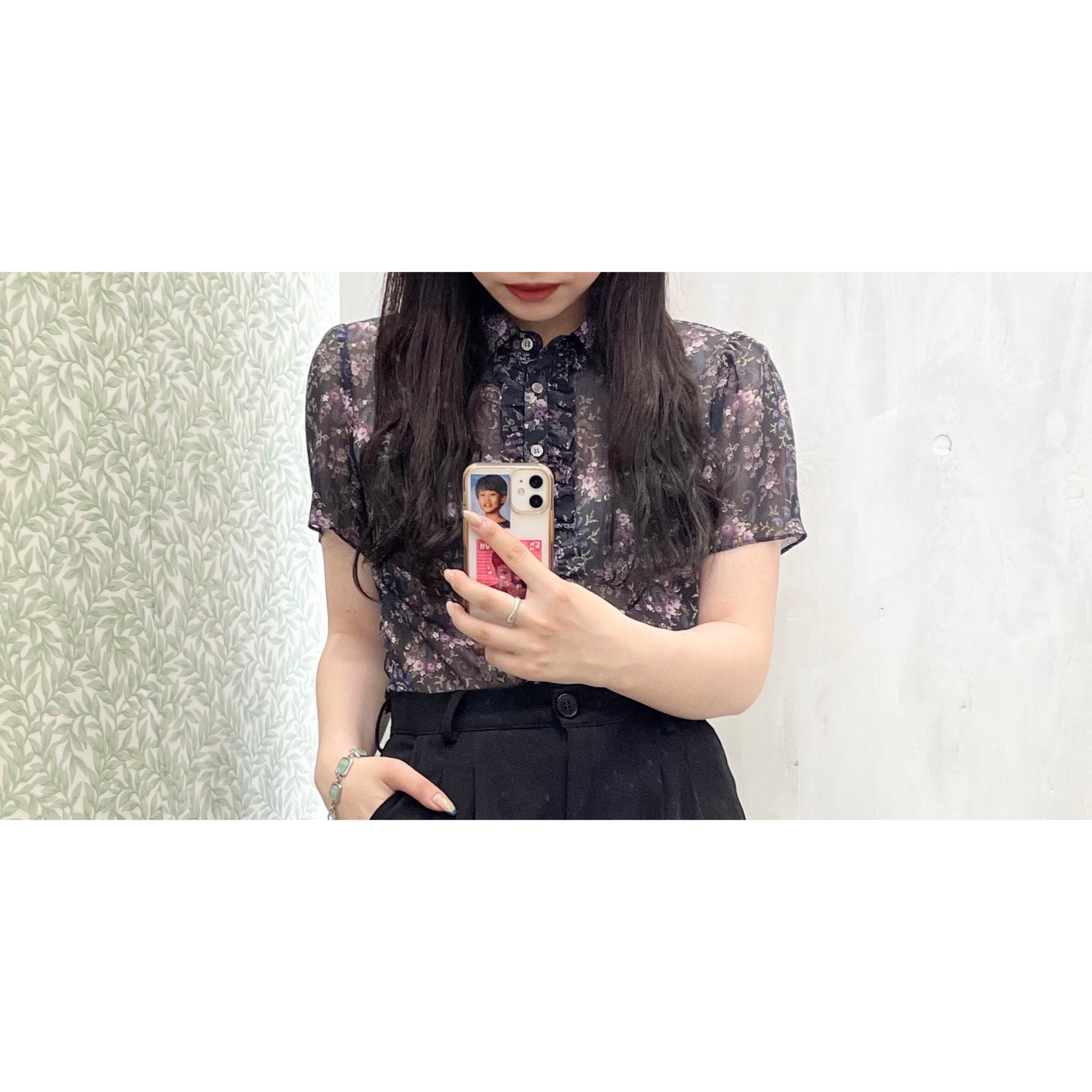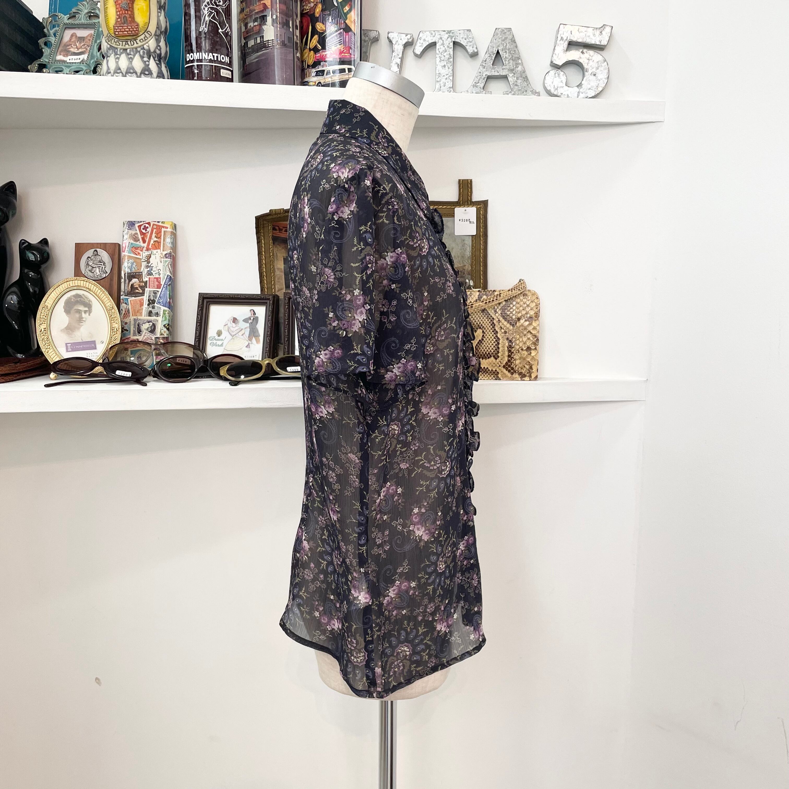 Laura Ashley/blouse/flower/navy/frill/ローラアシュレイ/ブラウス/フリル/小花柄/シアー/ネイビー/タグ付き