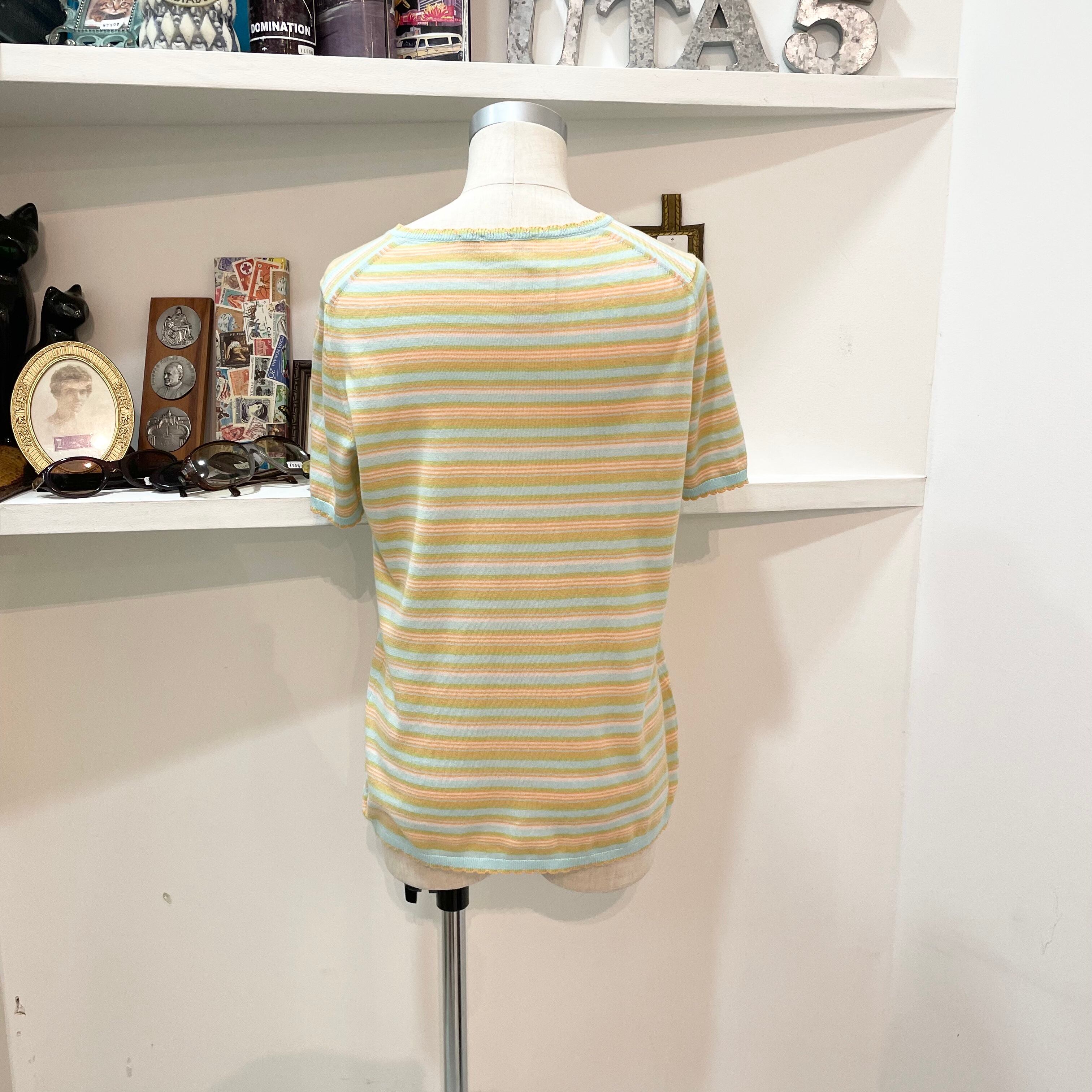 John Smedley/tops/colorful/border/tight/Ssize/ジョンスメドレー/トップス/半袖/カラフル/ぴったり/Sサイズ