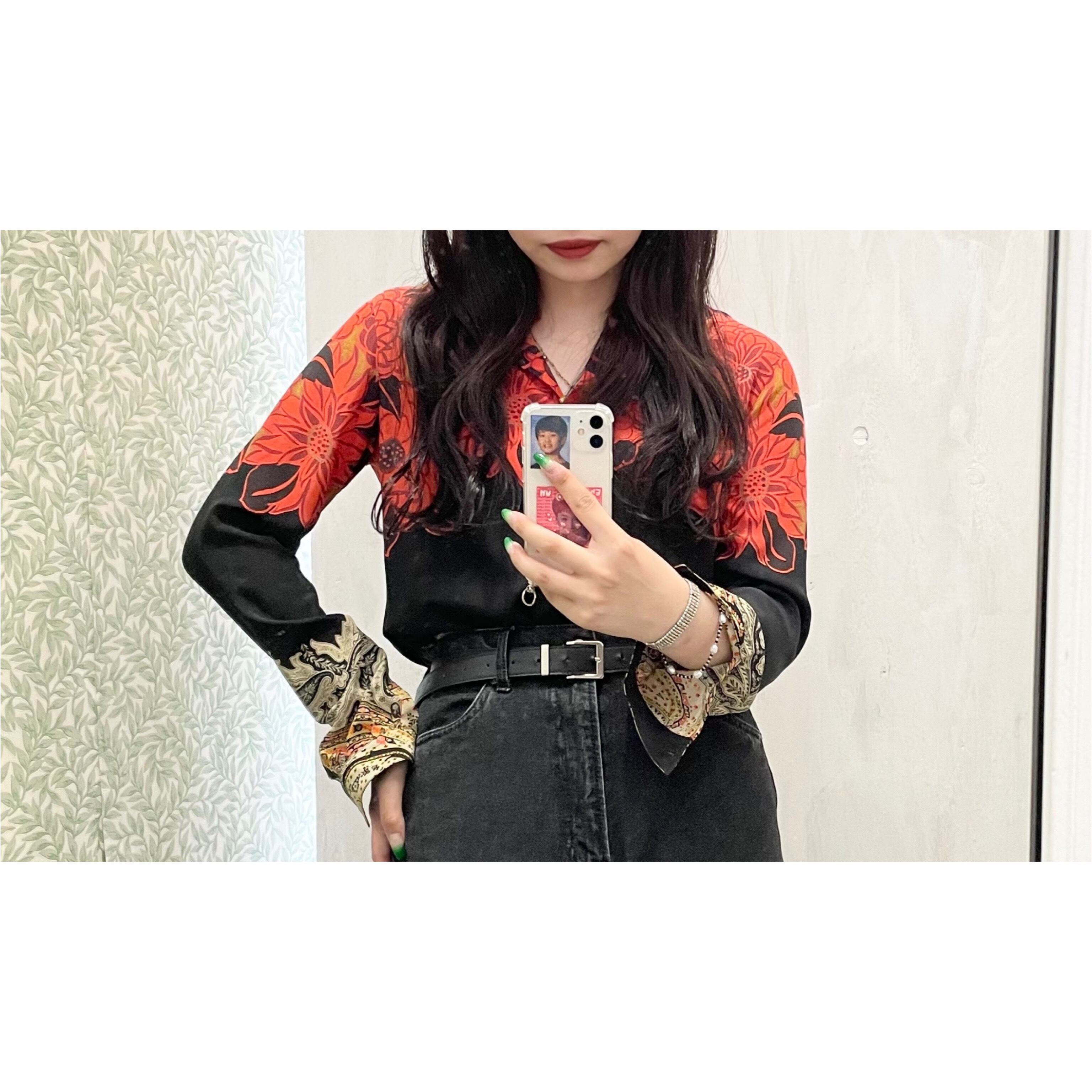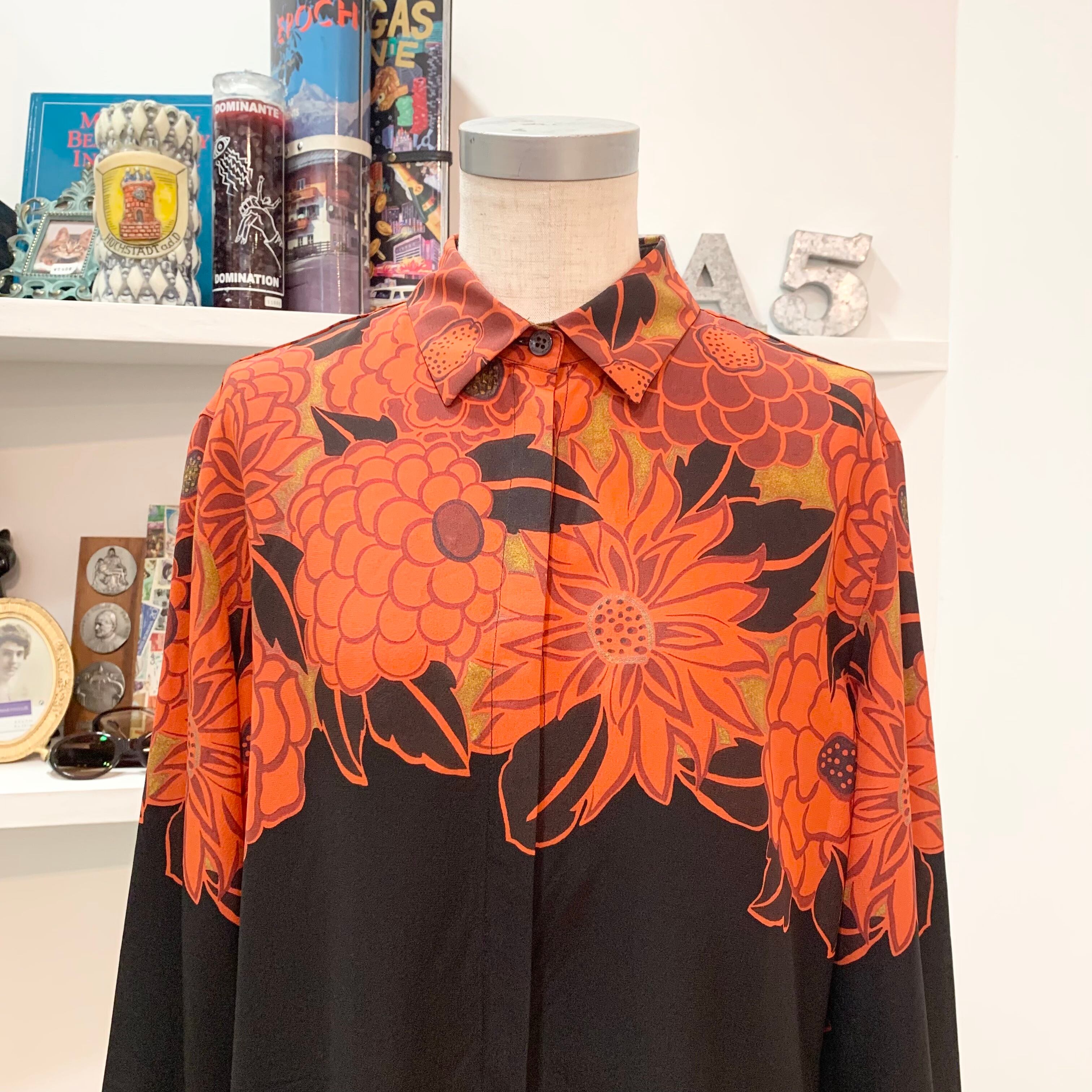 ETRO/long shirt/tops/black/orange/flower/ladies/エトロ/ロングシャツ/黒/オレンジ/花/レディース