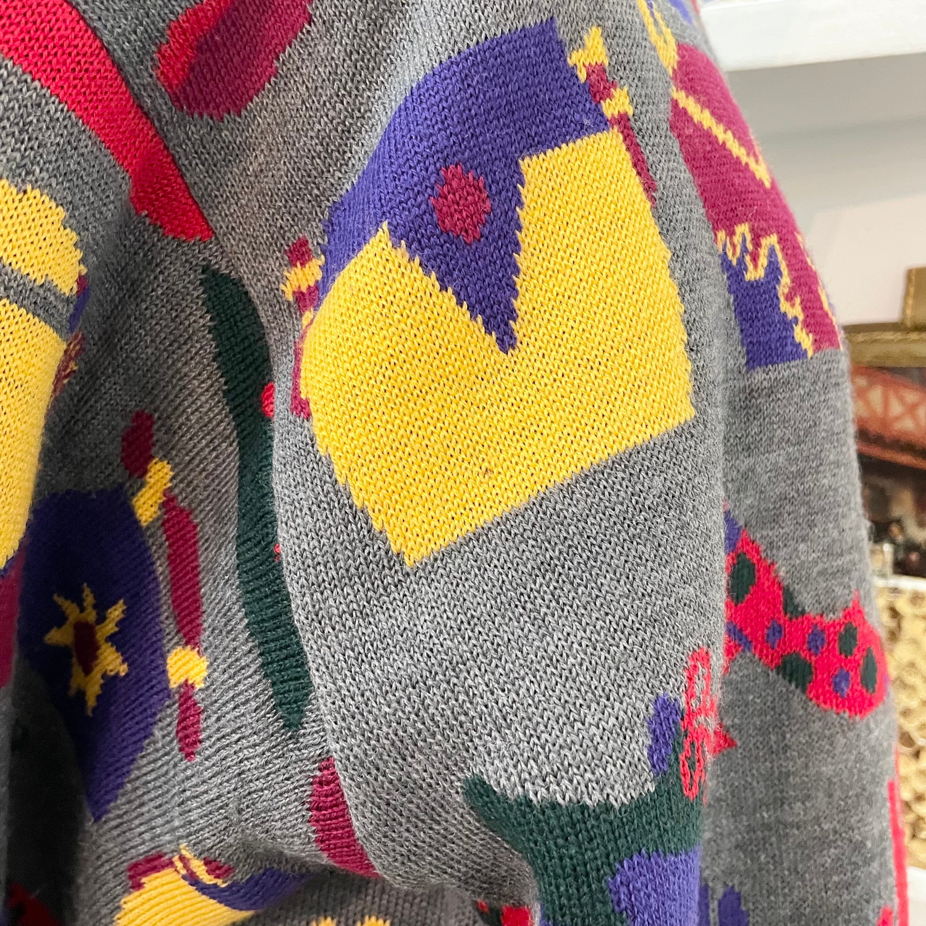 vintage/knit/gray/tops/shoes/ビンテージ/ヴィンテージ/ニット/トップス/長袖/グレー/カバン/靴/手袋/帽子/柄