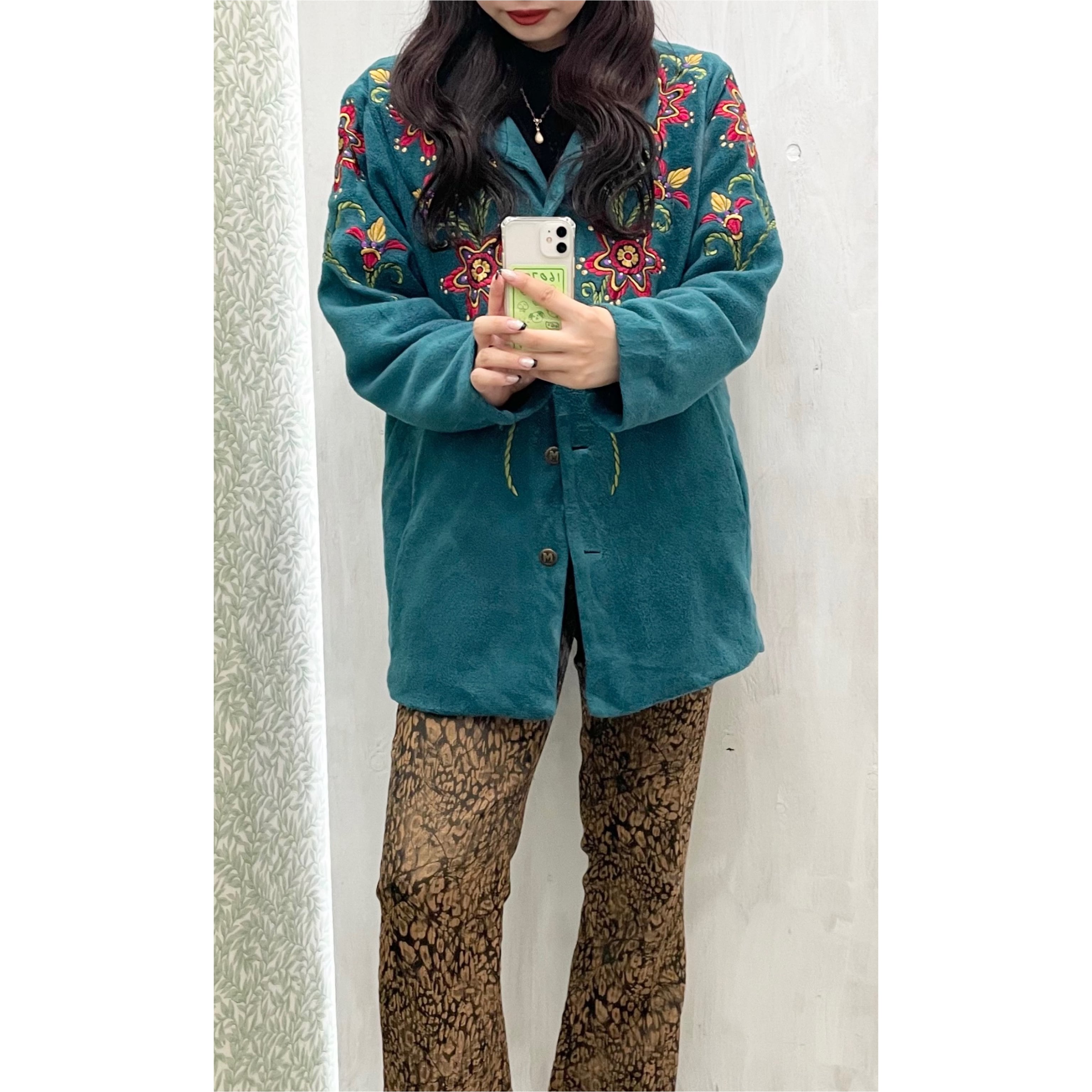 vintage/jacket/outer/green/flower/ladies/ビンテージ/ジャケット/アウター/ボア/緑/花/レディース