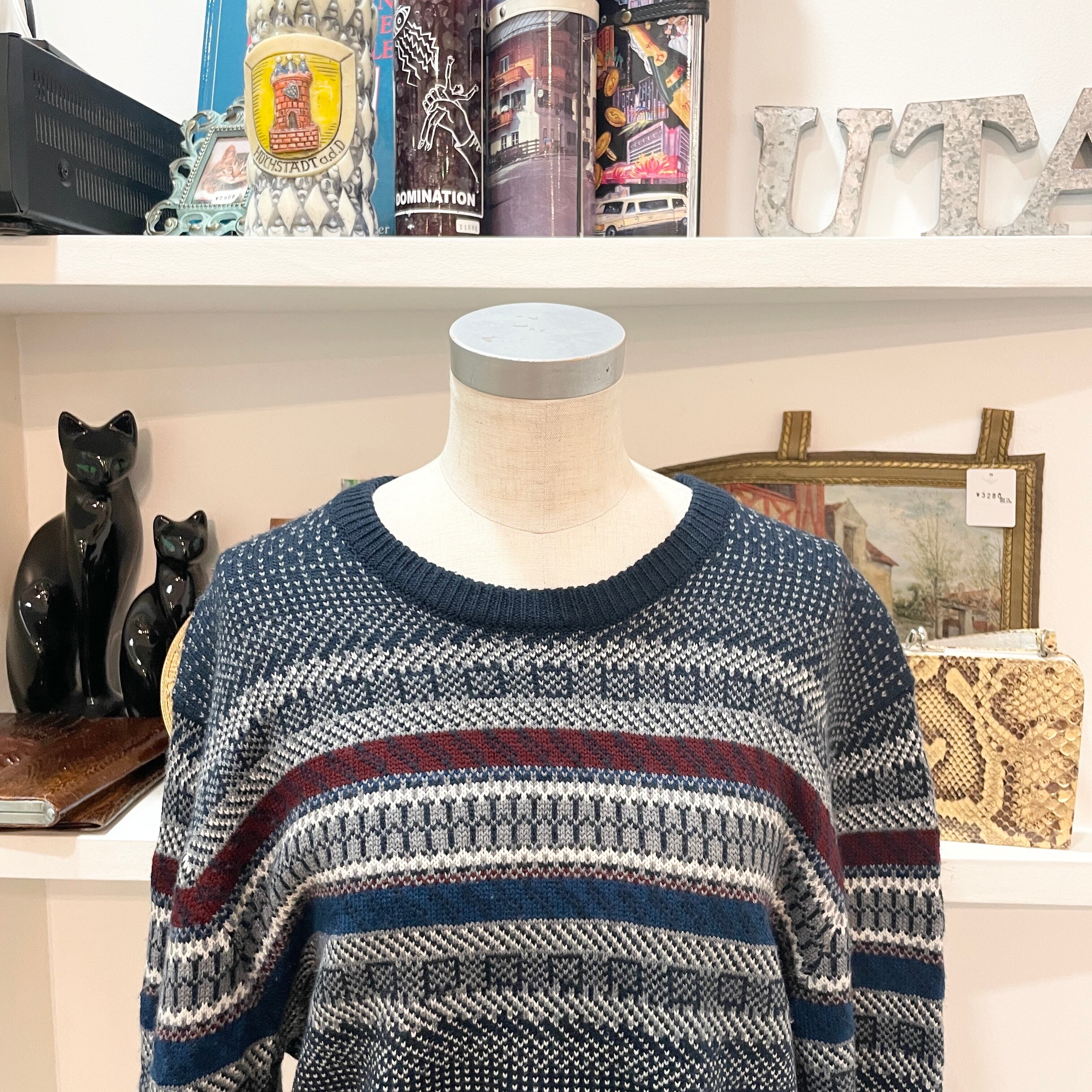 vintage/knit/blue/white/red/ヴィンテージ/ニット/ブルー/ホワイト/レッド