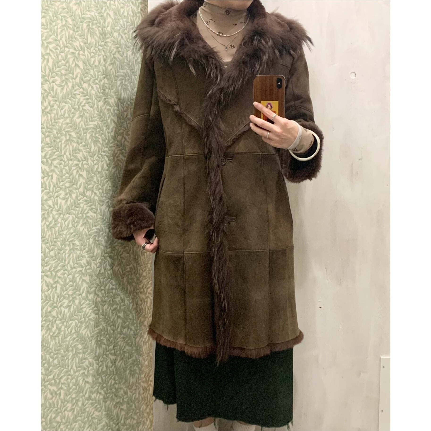 vintage/suede/fur/coat/long/ヴィンテージ/コート/スウェード/ファー/ロング丈