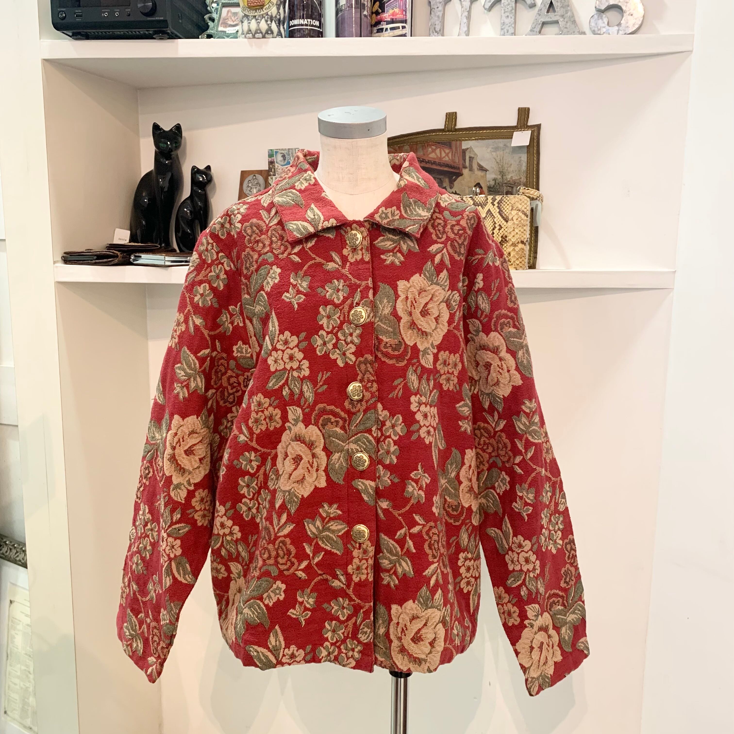 vintage/jacket/tops/flower/red/green/ladies/ビンテージ/ジャケット/花/赤/黄緑/レディース