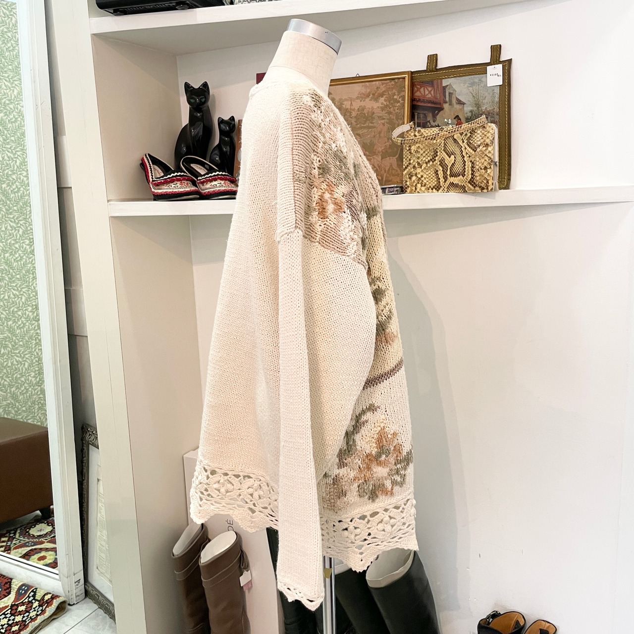 vintage/knit/flower/beige/ladies/ヴィンテージ/ニット/花柄/ベージュ/レディース