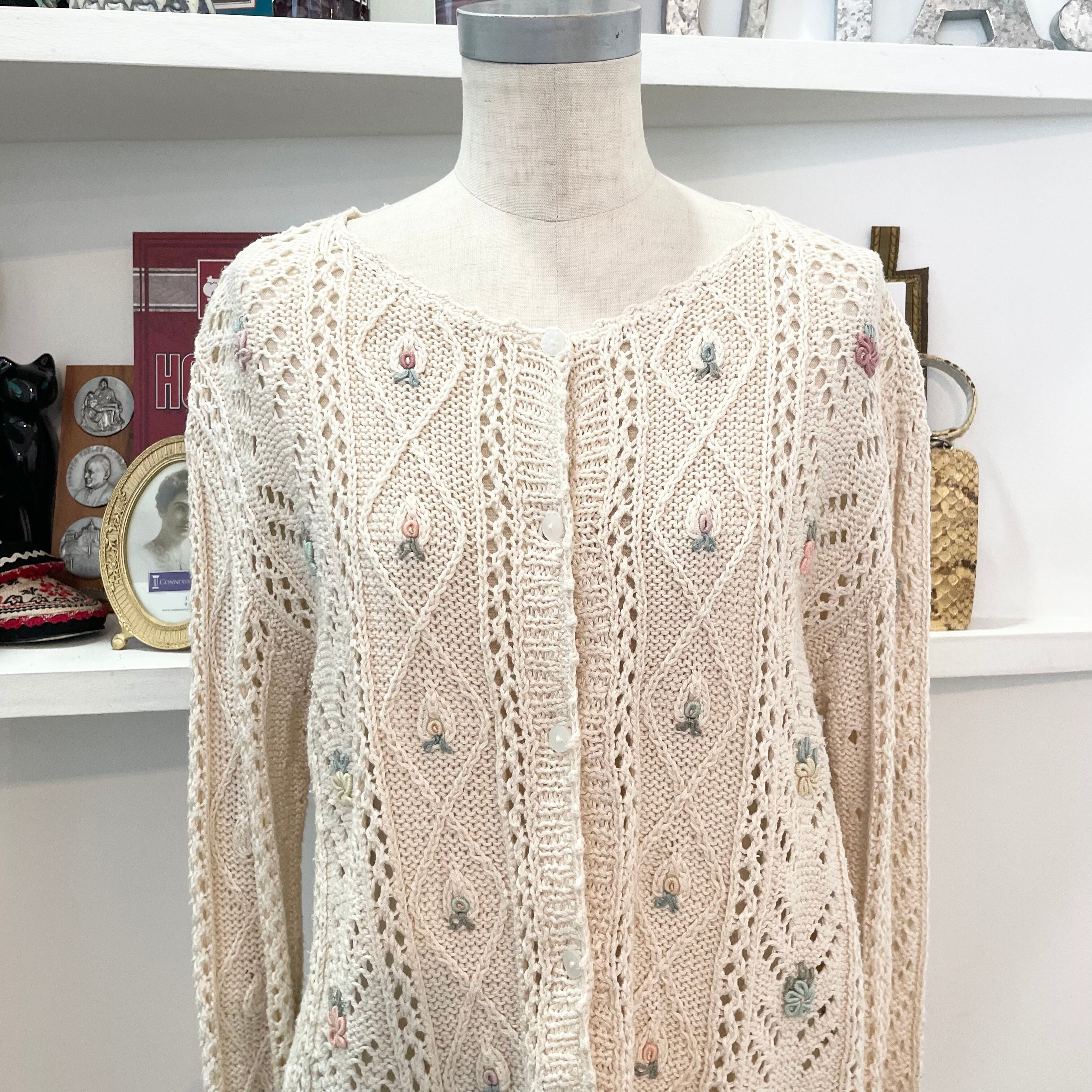 vintage/cardigan/flower/ivory/beige/ビンテージ/ヴィンテージ/カーディガン/透かし編み/花/アイボリーベージュ