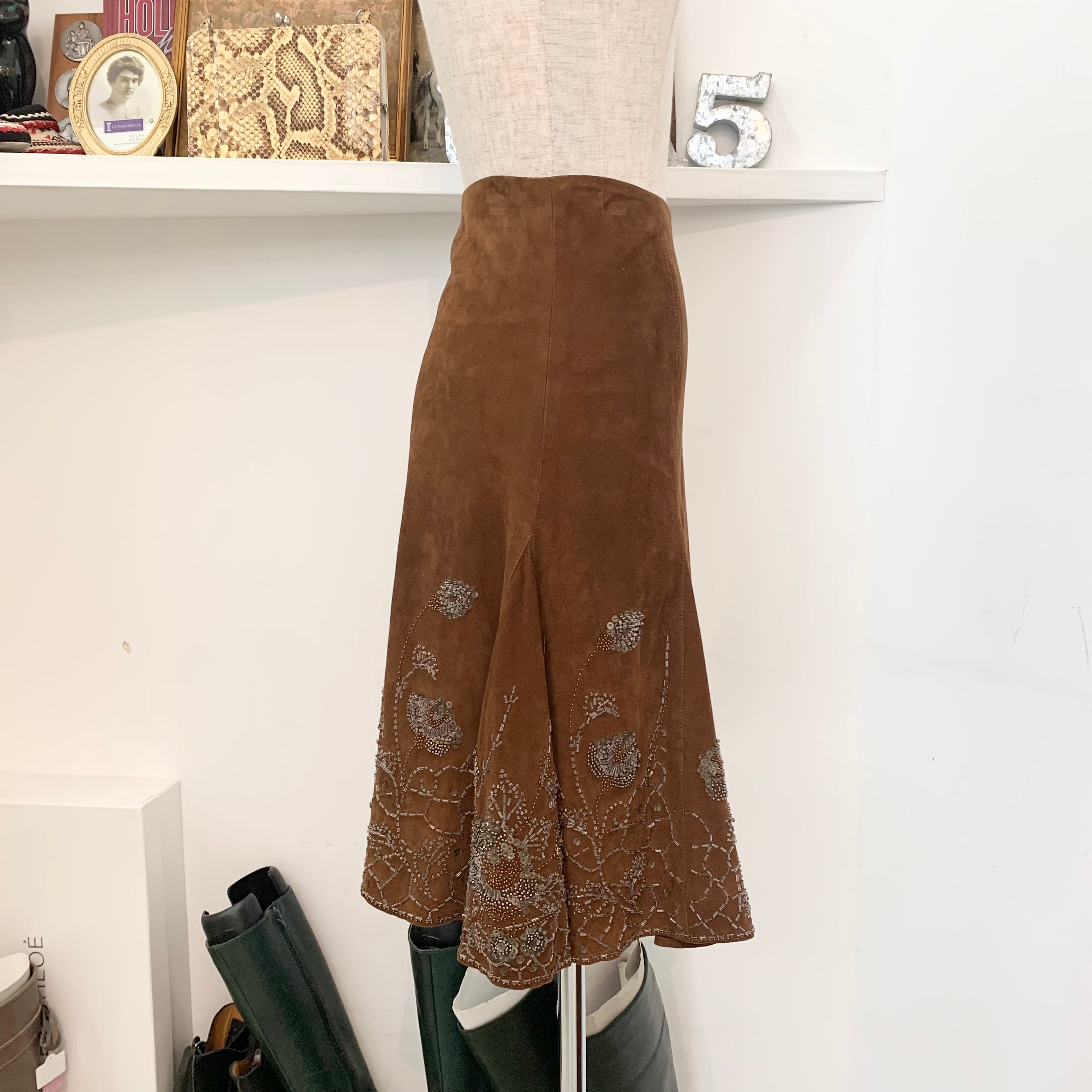 ralphlauren/flareskirt/brown/beads/ラルフローレン/スカート/コーデュロイ/ビーズ刺繍/サイズ6