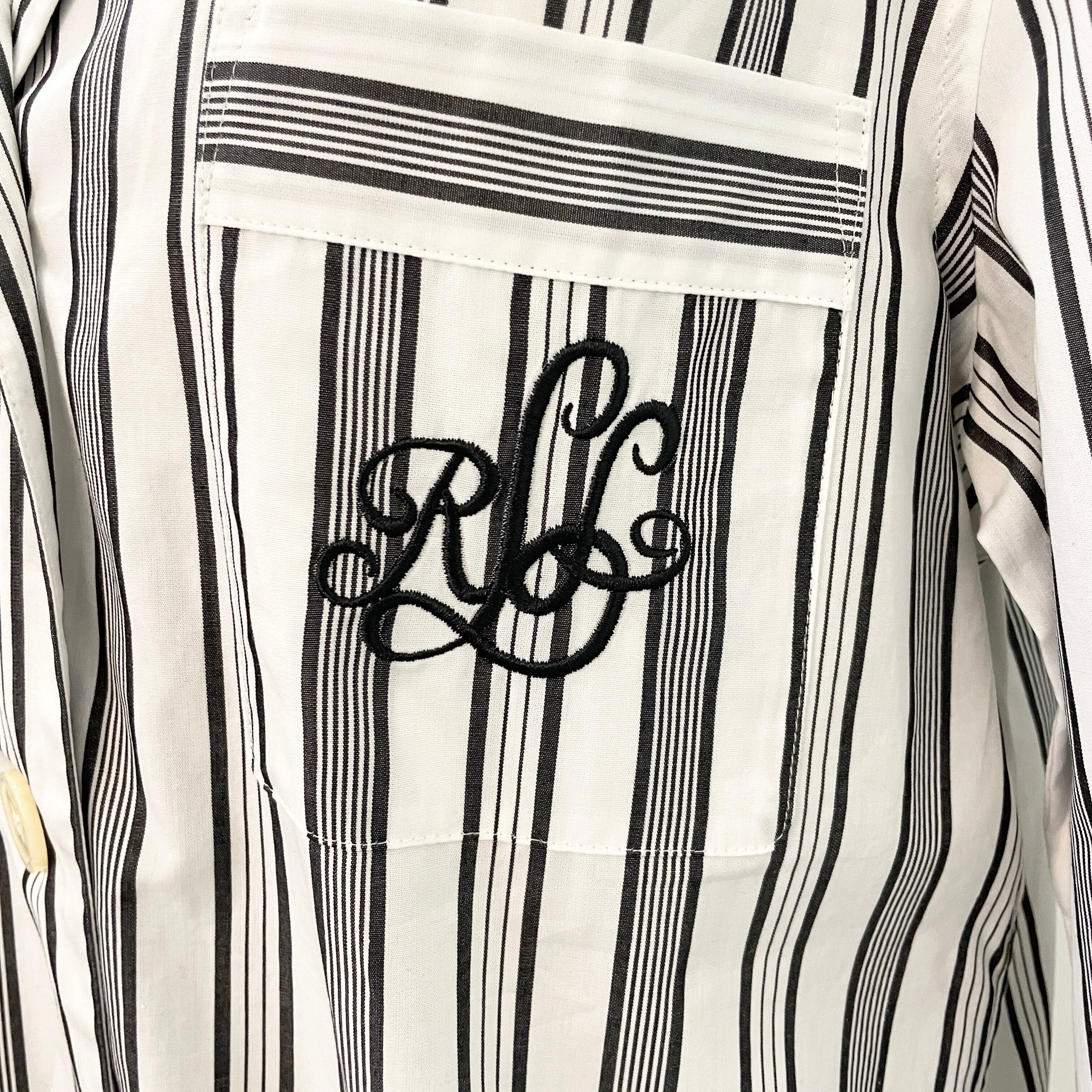 Lauren Ralph Lauren/shirt/stripe/white/black/ladies/ローレンラルフローレン/シャツ/ストライプ柄/白色/黒色/レディース