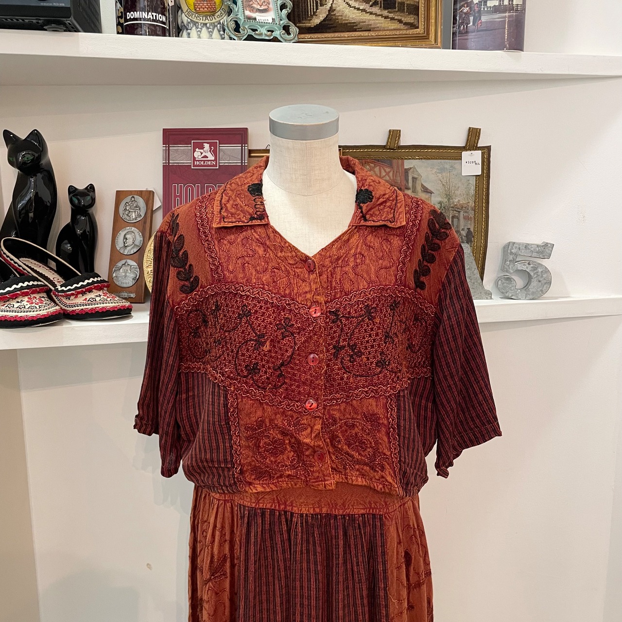 .ヴィンテージワンピースのセットアップ商品です!シンプル過ぎないデザインの為、それぞれ別々で他のアイテムと合わせても可愛いこと間違いなしです◎