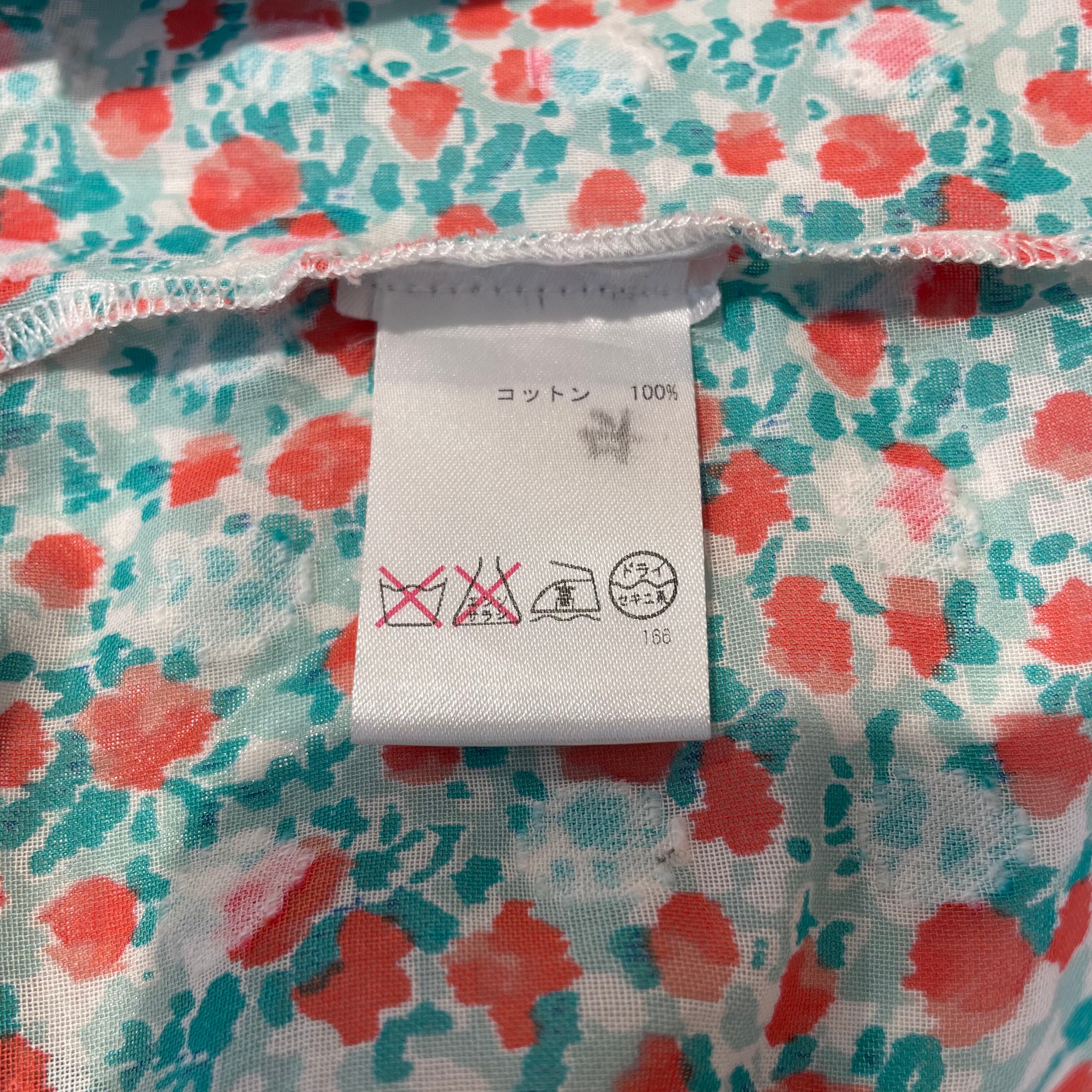 青とオレンジの鮮やかな色合いがとても夏っぽく、素材もコットンが使われているので通気性も抜群な、夏の季節にはとてもぴったりな一着となっております⭐︎