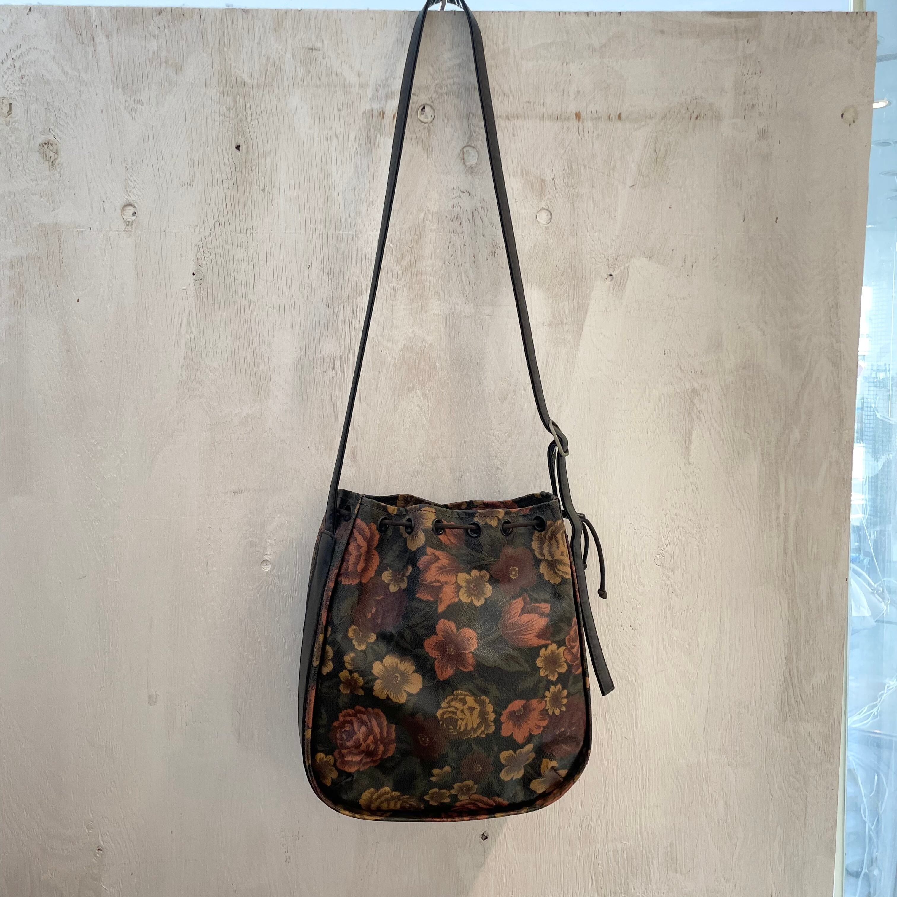 .ピエールカルダンの花柄がとっても可愛いショルダーバッグです!バッグの口を紐で締めて巾着のようにもなるデザインがとても可愛いアイテムです◎