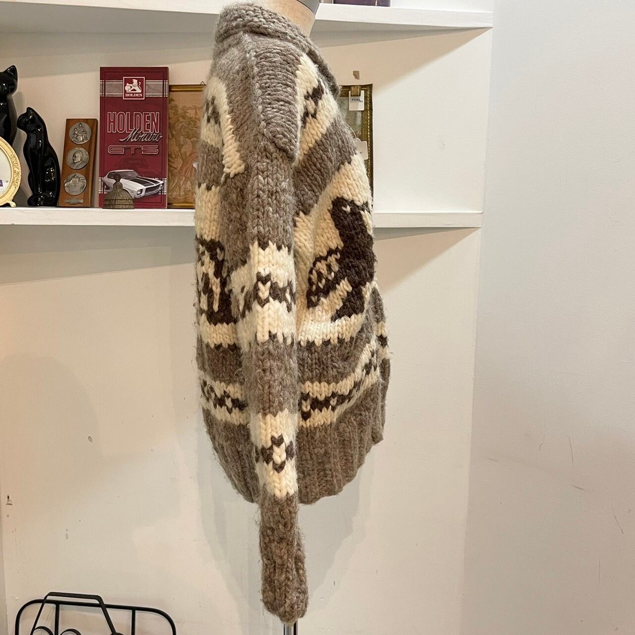 vintage/cardigan/sweater/jumper/bird/ivory/brown/ビンテージ/カーディガン/セーター/ジャンパー/鳥柄