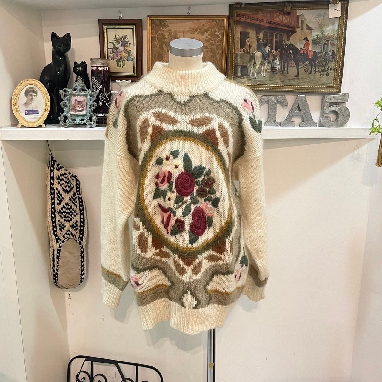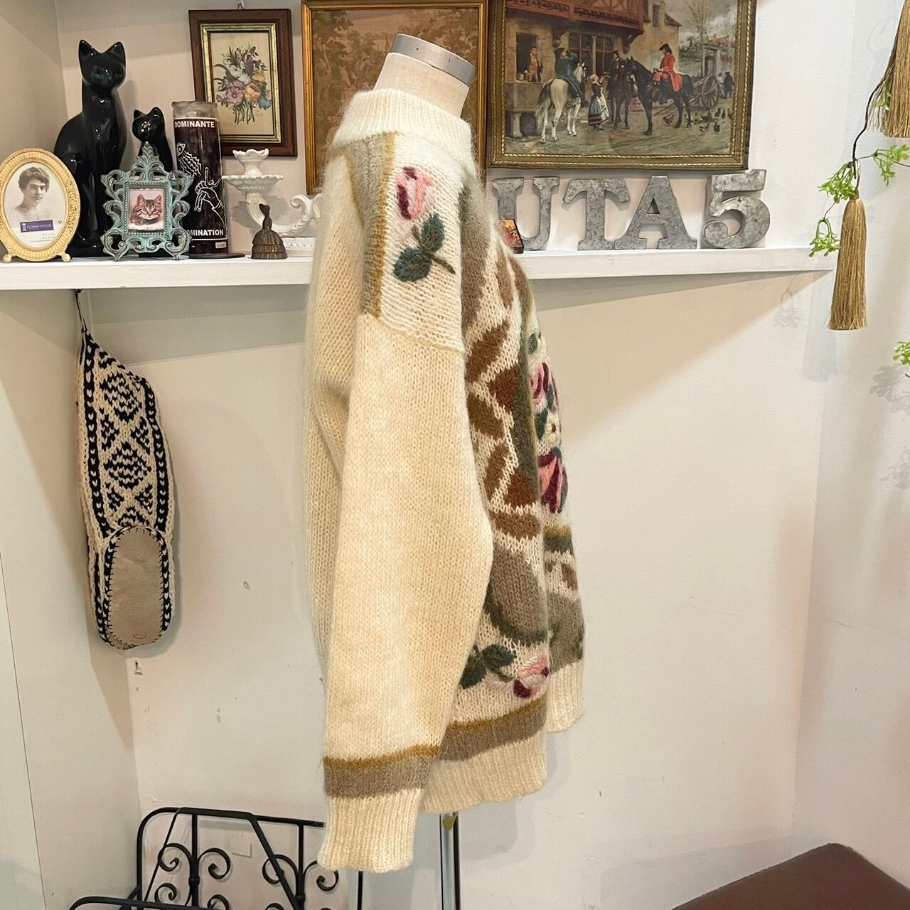 vintage/knit/rose/flower/Ivory/ladies/ビンテージ/ニット/薔薇/花/アイボリー/レディース