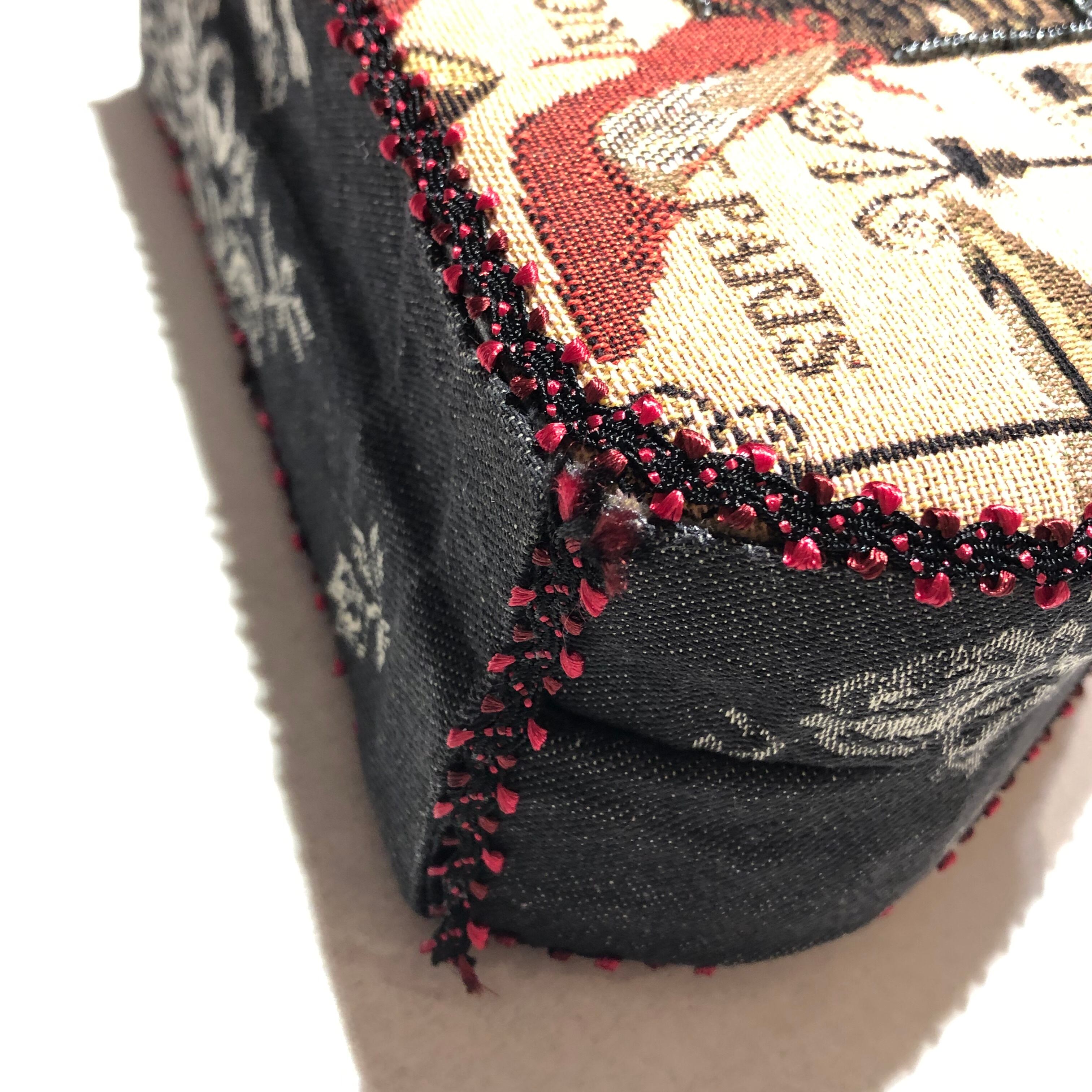 珍しい形のハンドバッグで、細かく施された装飾が可愛いアイテムです。