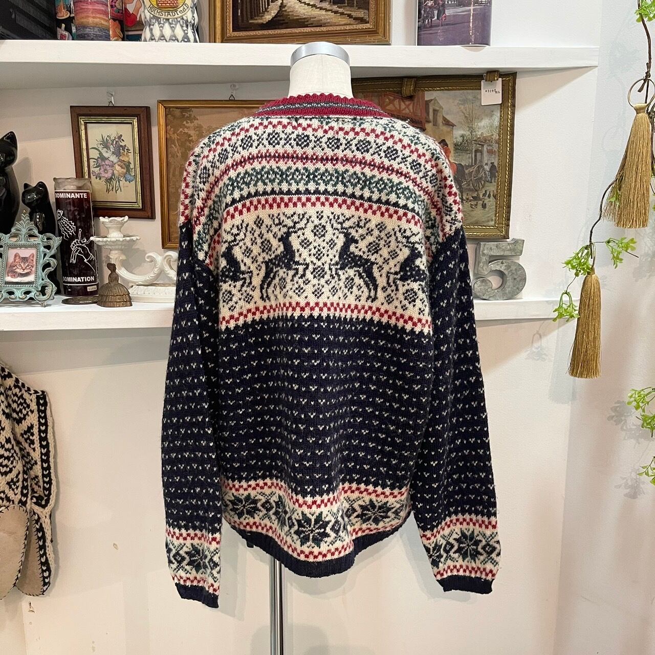 vintage/nordic cardigan/metal hook/deer/blue/red/ビンテージ/ノルディックカーディガン/メタルフック/鹿