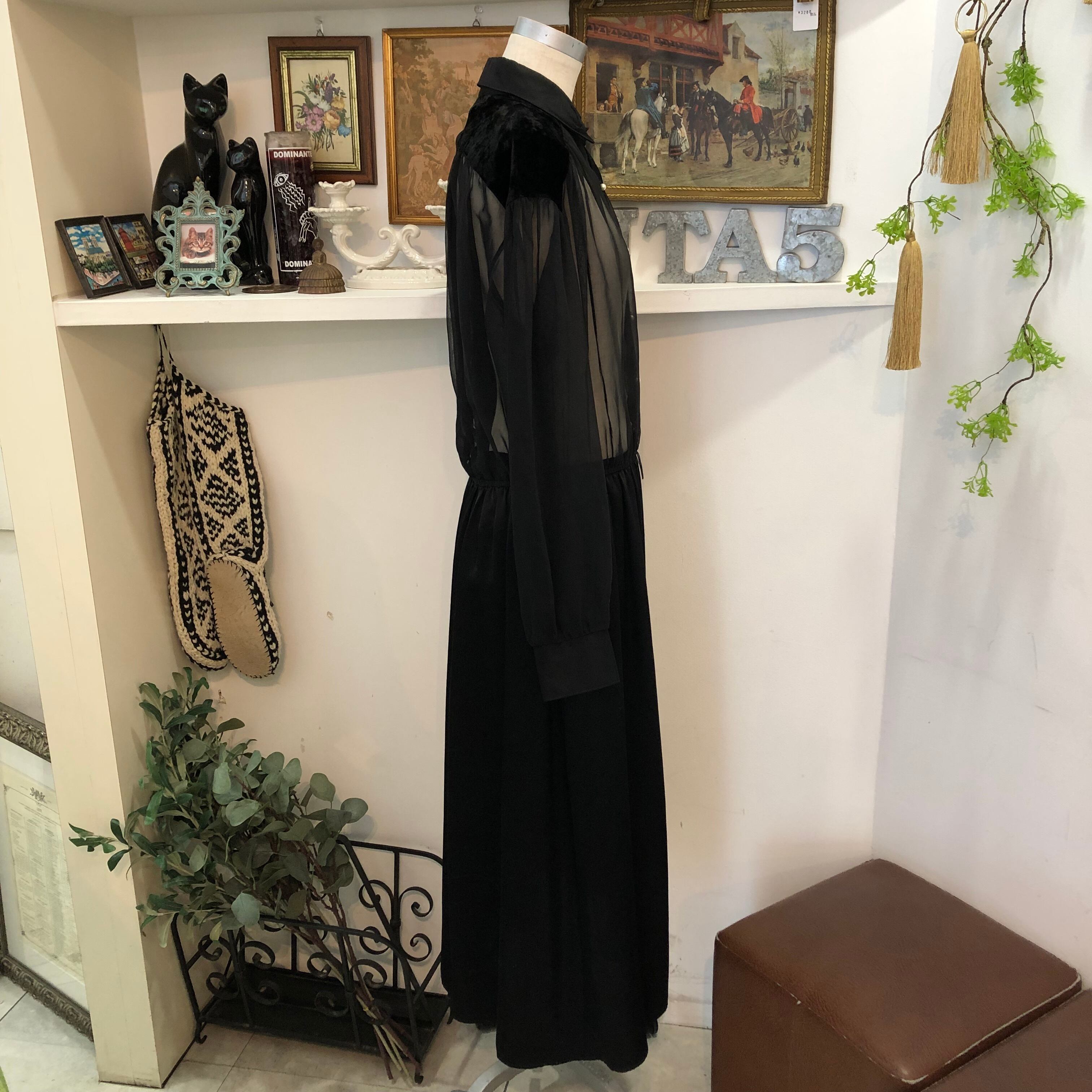 vintage/long one-piece/dress/see-through/perl/black/ビンテージ/ロングワンピースシースルー/パール/ブラック