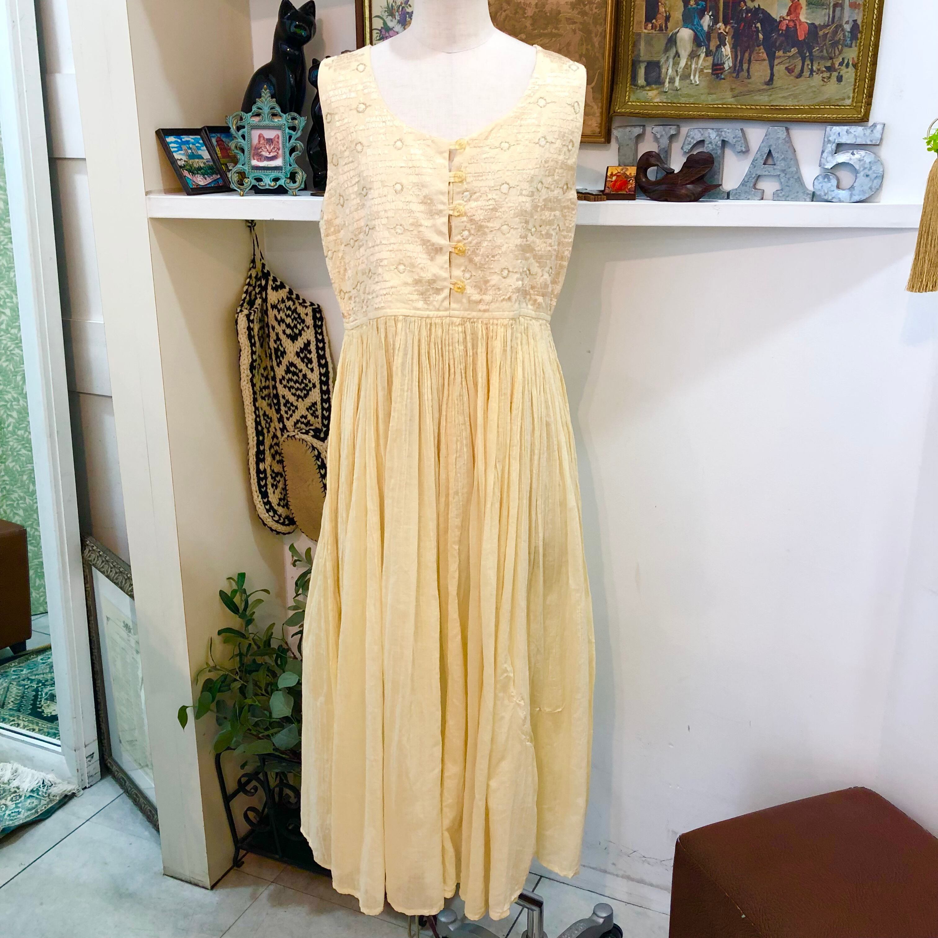 vintage/onepiece/no sleeve/yellow/ビンテージ/ワンピース/ノースリーブ/イエロー