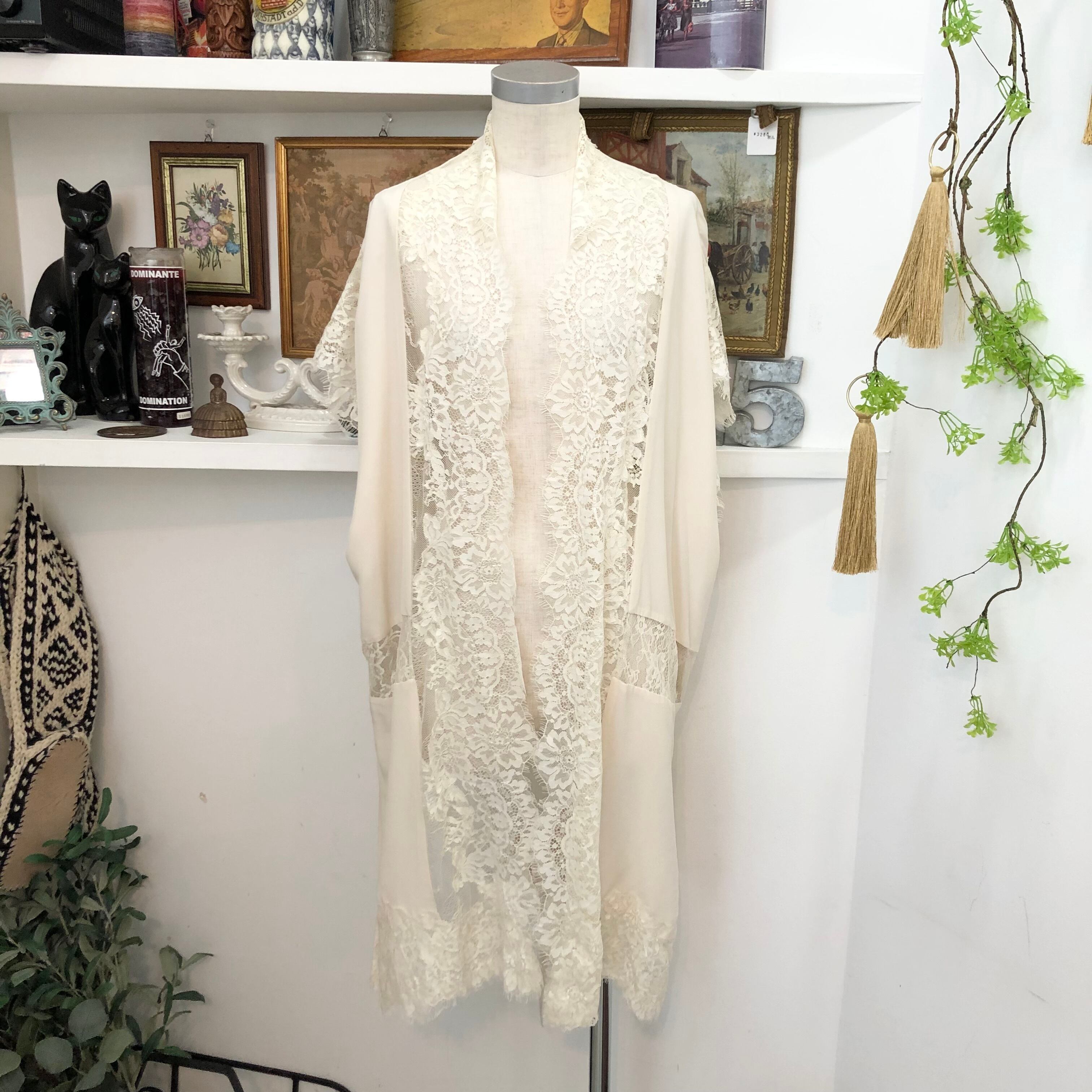 vintage/vest/lace/cream/ヴィンテージ/ベスト/ジレ/サイズM/リボン付き