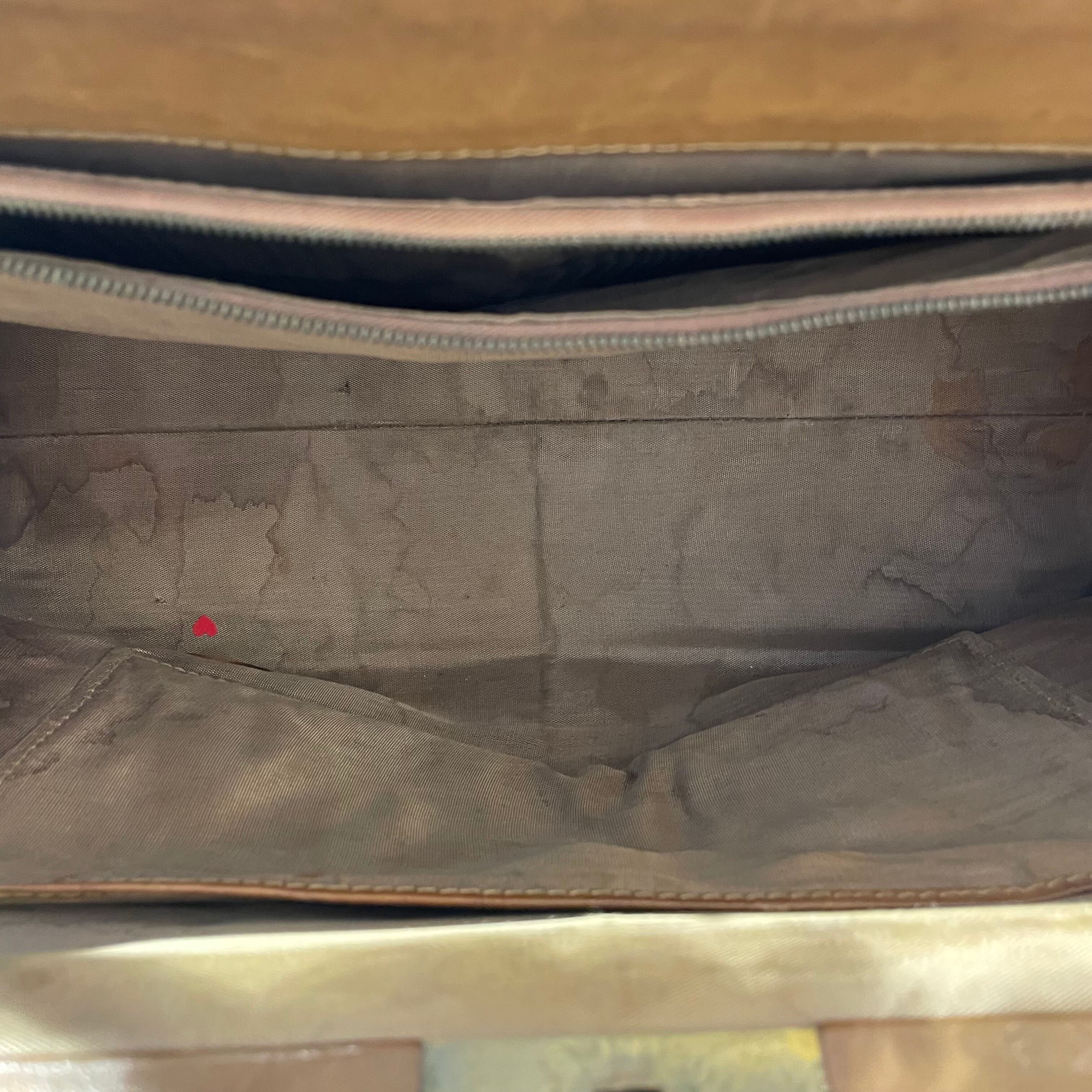 持ち手は後付けですが、特に違和感等はございません。また、革製品ですので表に少しの汚れや中の汚れかございます。ご注意ください。
