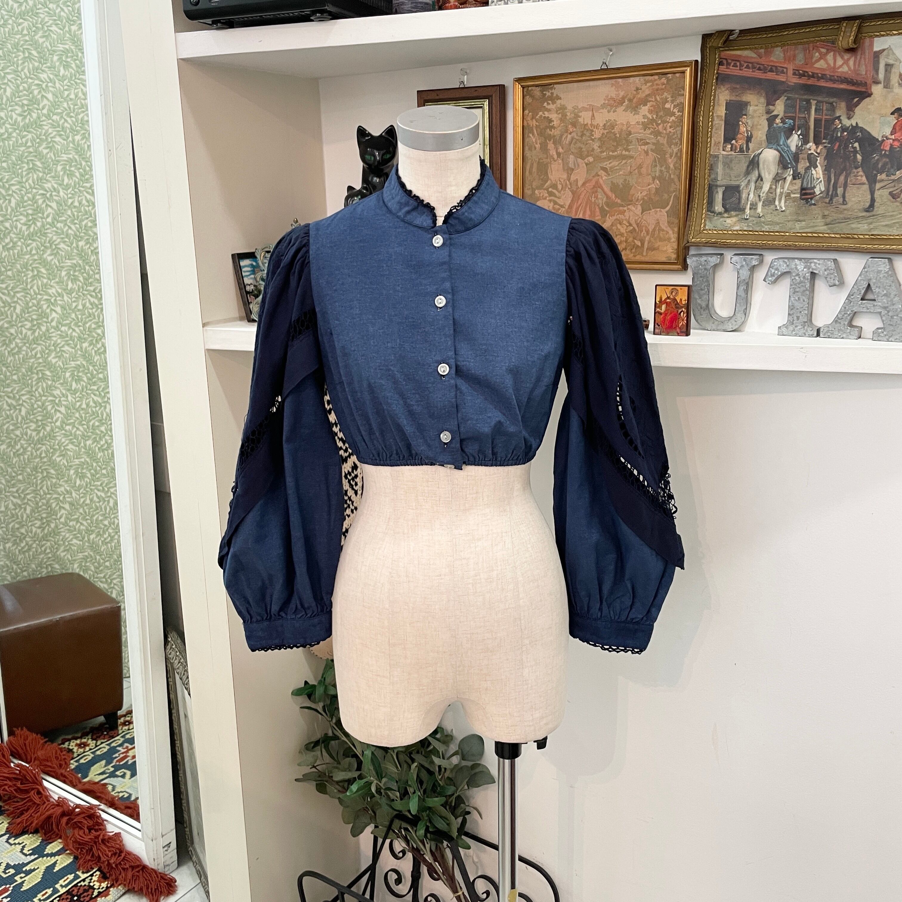 vintage/blouse/cropped/navy/ladies/ヴィンテージ/ブラウス/クロップド丈/ネイビー/レディース