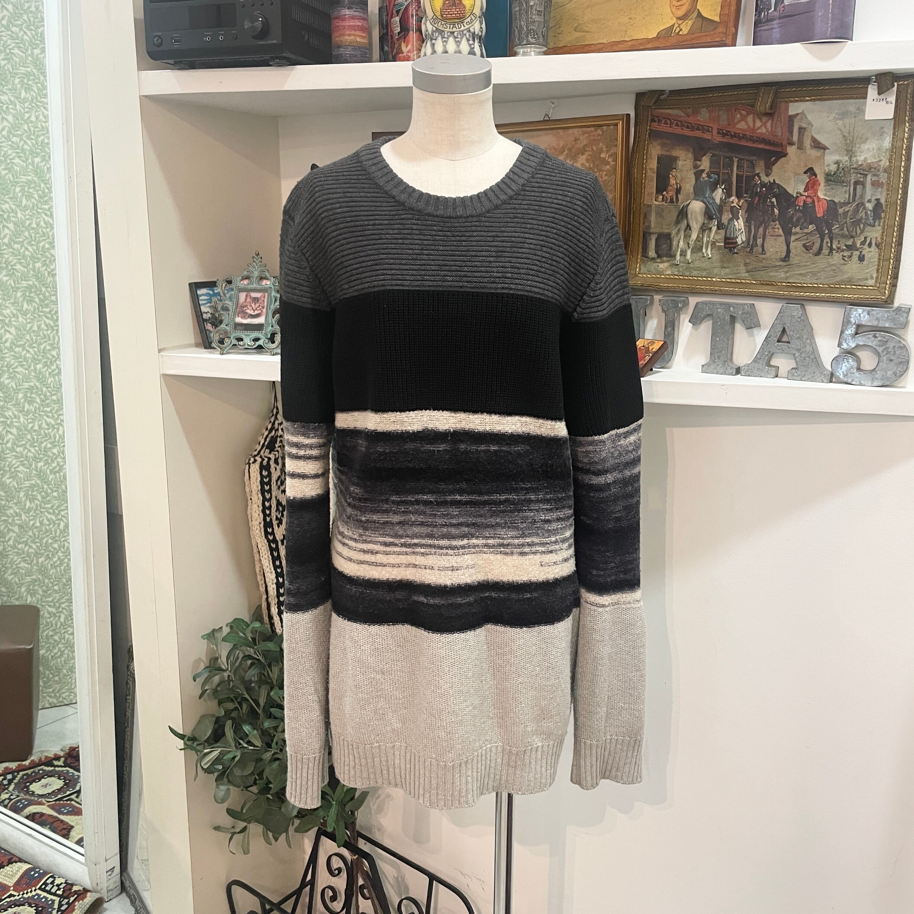 DIESEL/sweater/boarder/black/gray/men's/ディーゼル/セーター/ボーダー/ブラック/グレー/メンズ