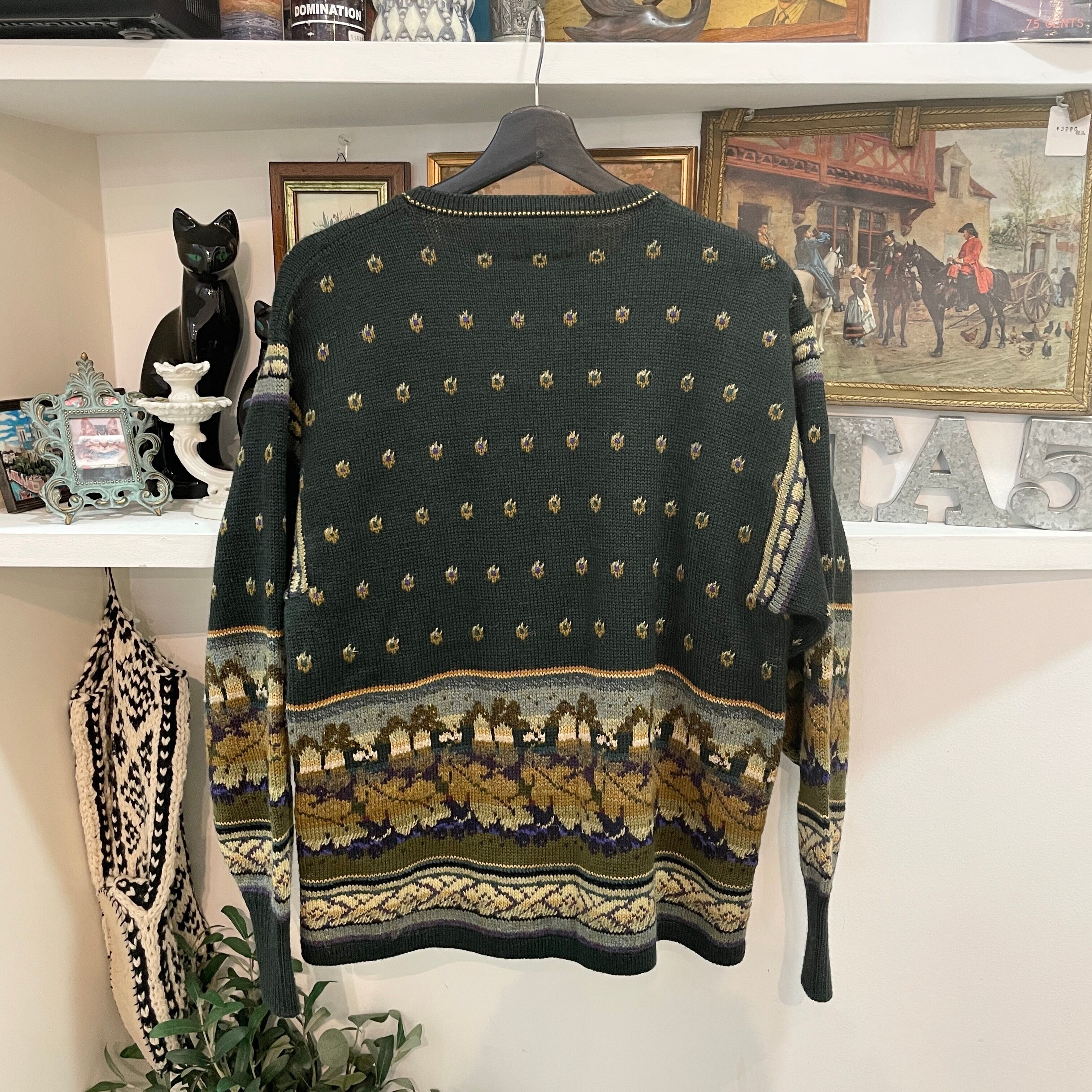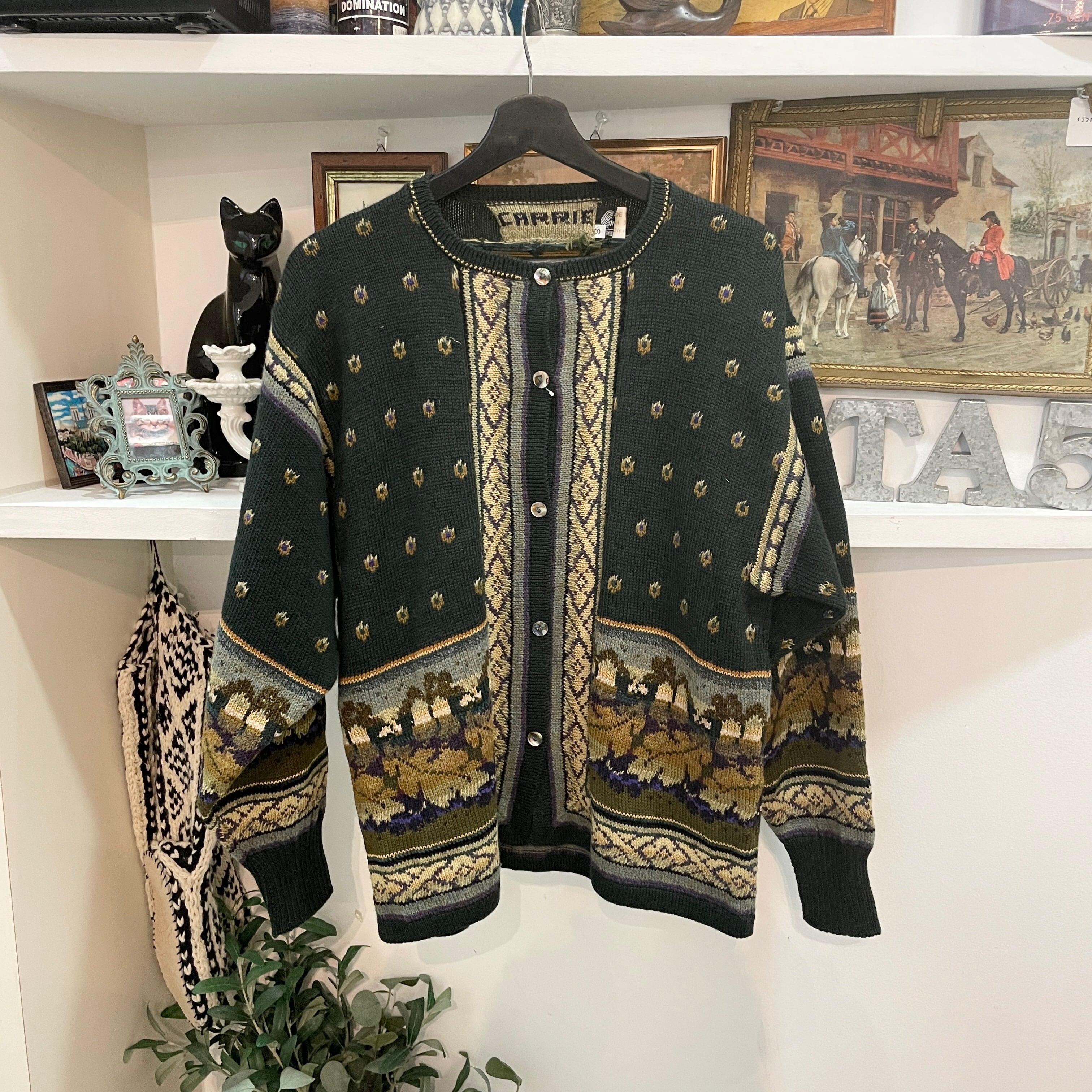vintage/cardigan/green/ladies/ヴィンテージ/カーディガン/総柄/グリーン/レディース